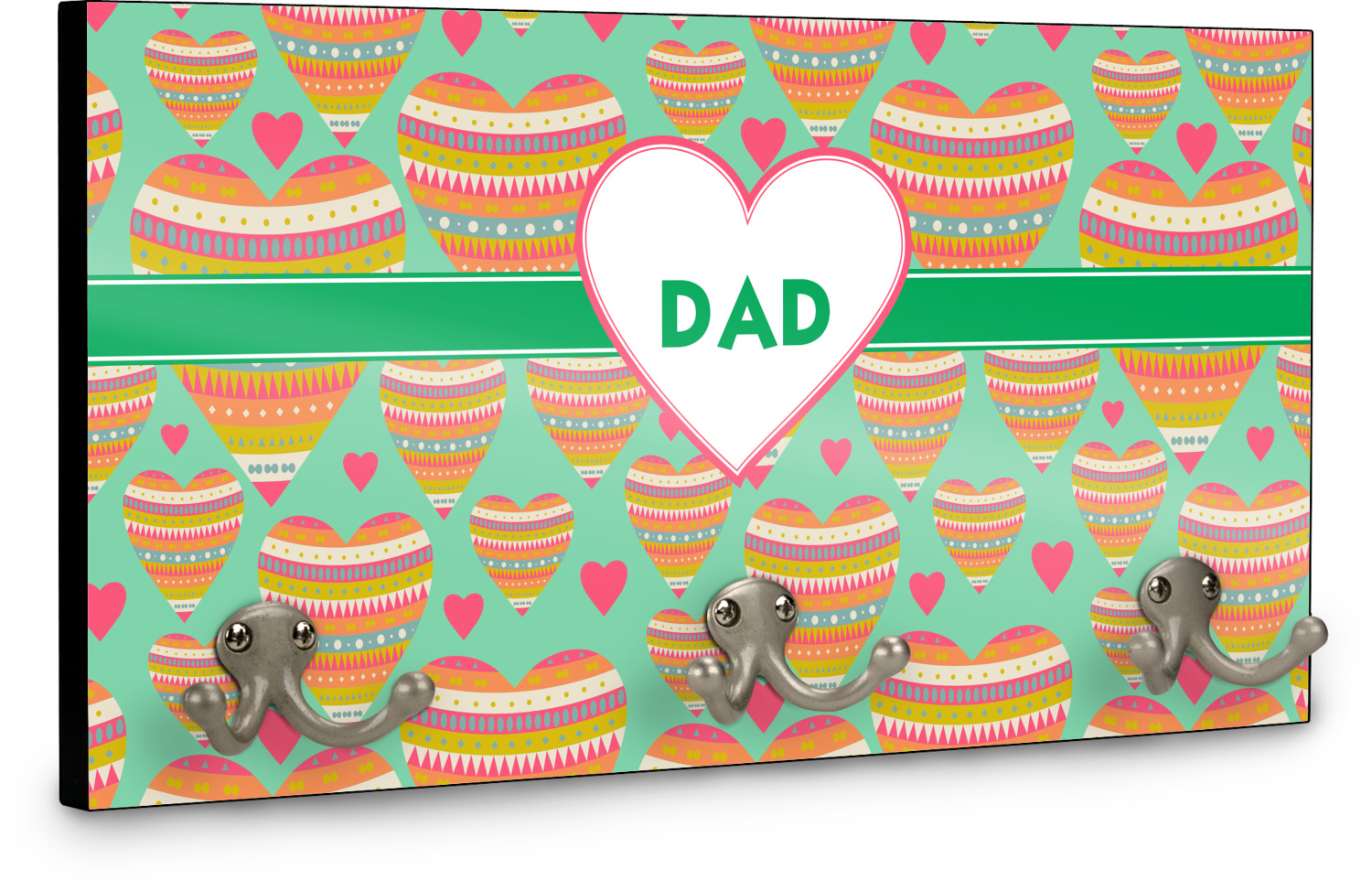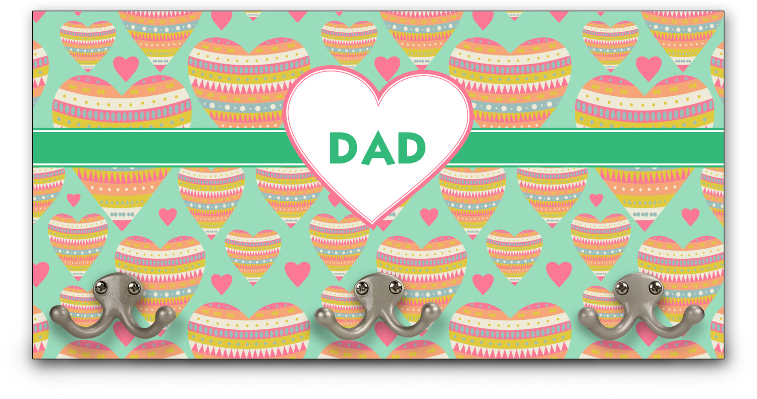 This coat rack is the perfect way to add some personality to your wall or entryway. The board is made of a strong maple that is approximately 16" x 8". The three 2-prong hooks are a sturdy metal that have two screws attaching them to the board. Your design is printed right onto the front of the board while the back and sides are a simple black.