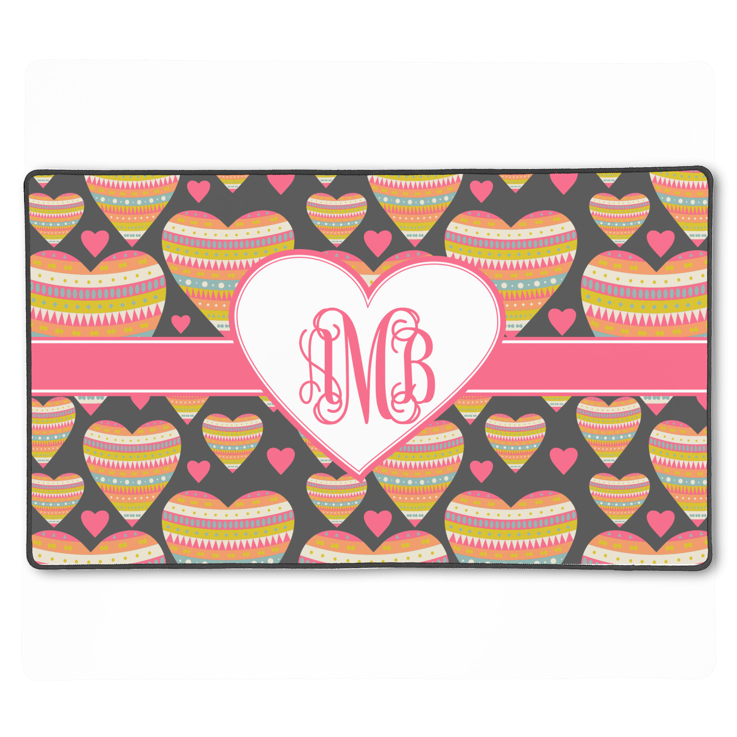 This Valentine's Day design looks sweet enough to eat. Multicolored hearts, each one filled with stripes and triangles and patterns of all kinds, are set on a crisp white background.