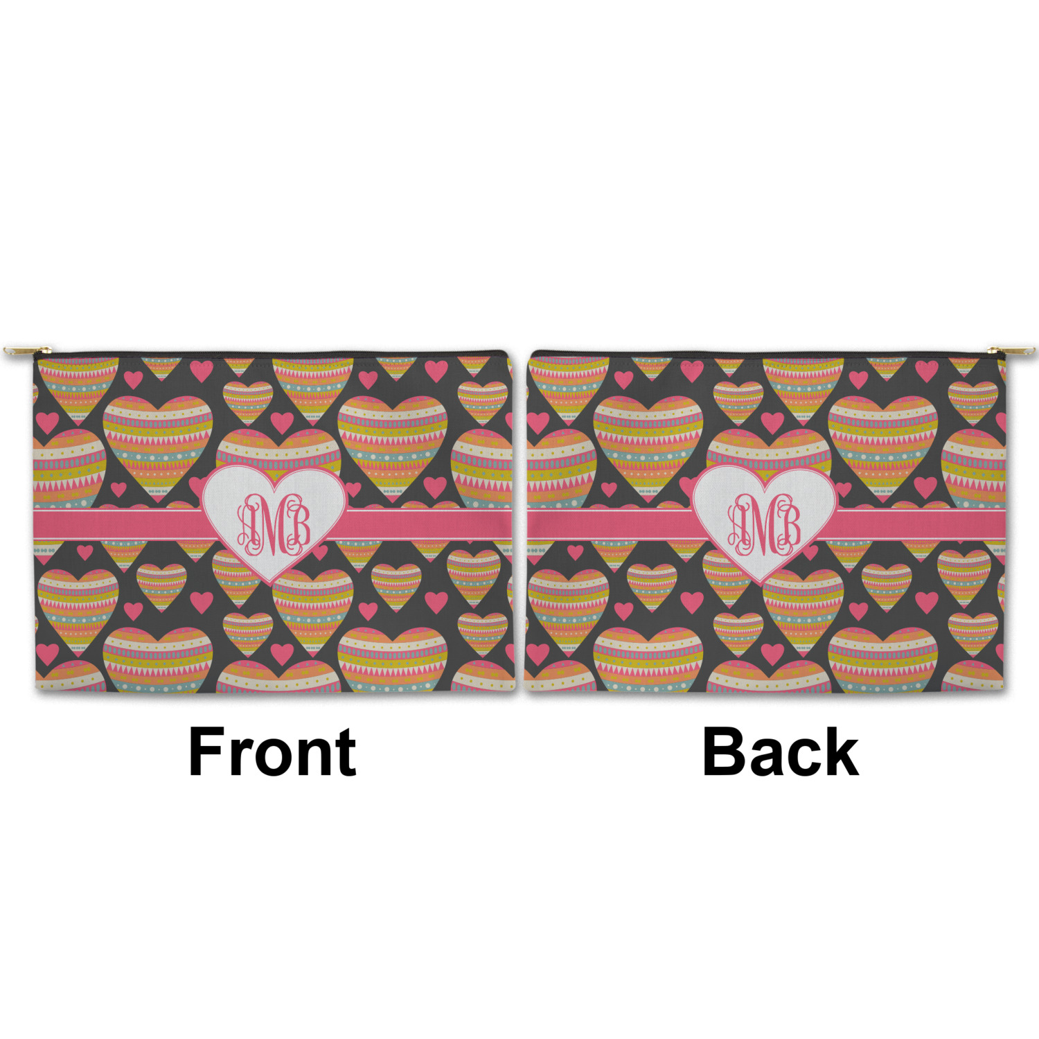 You can design both the front and the back of the pouch - same design, two complementary designs or two totally different designs - the choice is yours! We offer many different personalization styles i.e. name, name & initial, monograms - so the choice to personalize is also yours.