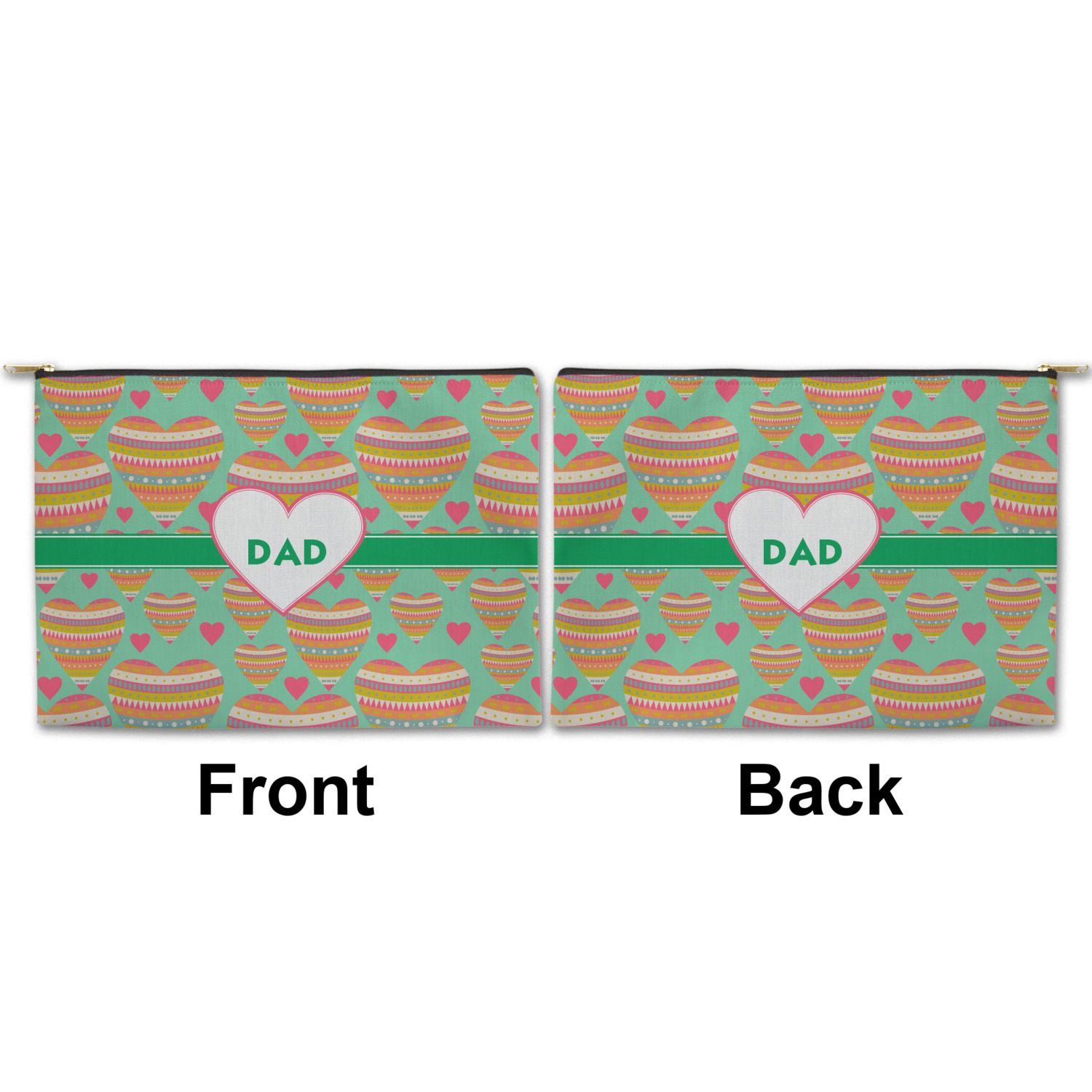 You can design both the front and the back of the pouch - same design, two complementary designs or two totally different designs - the choice is yours! We offer many different personalization styles i.e. name, name & initial, monograms - so the choice to personalize is also yours.