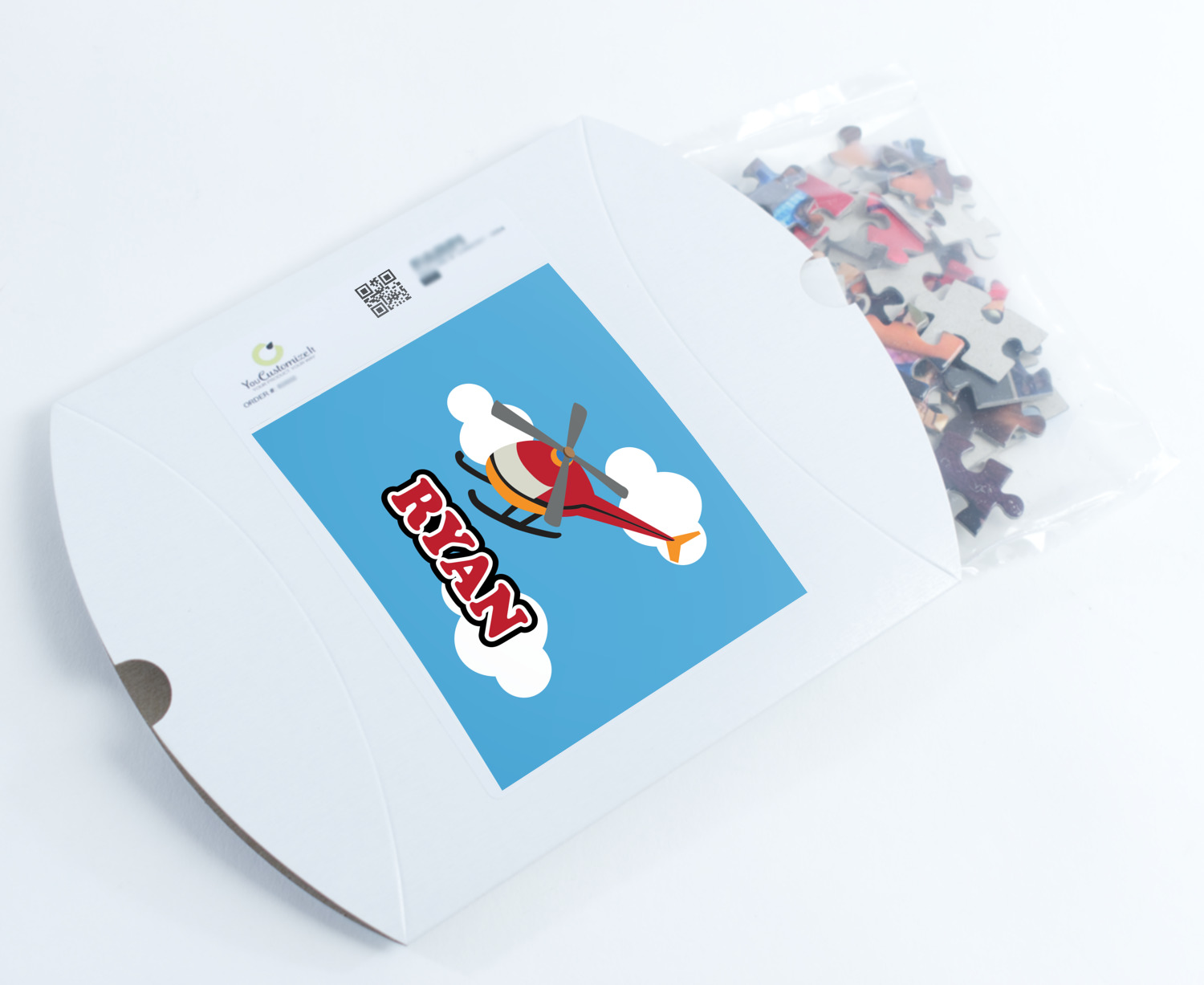 You can also upload your logo or art that you or your kids drew. To create more challenging jigsaw puzzles, you can create a pattern from with your logo or artwork. You can also add other elements such as text or personalization.