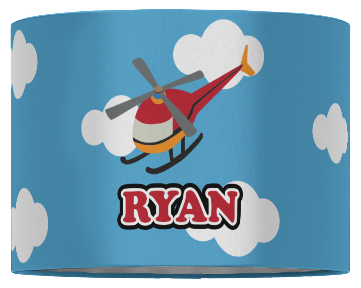 Calling all aviation enthusiast! Soaring through on a backdrop of a beautiful blue cloudy sky is our fun flying helicopter brightly colored in shades of reds and oranges. Don't forget to add that special touch by customizing the design with the name of your choice.