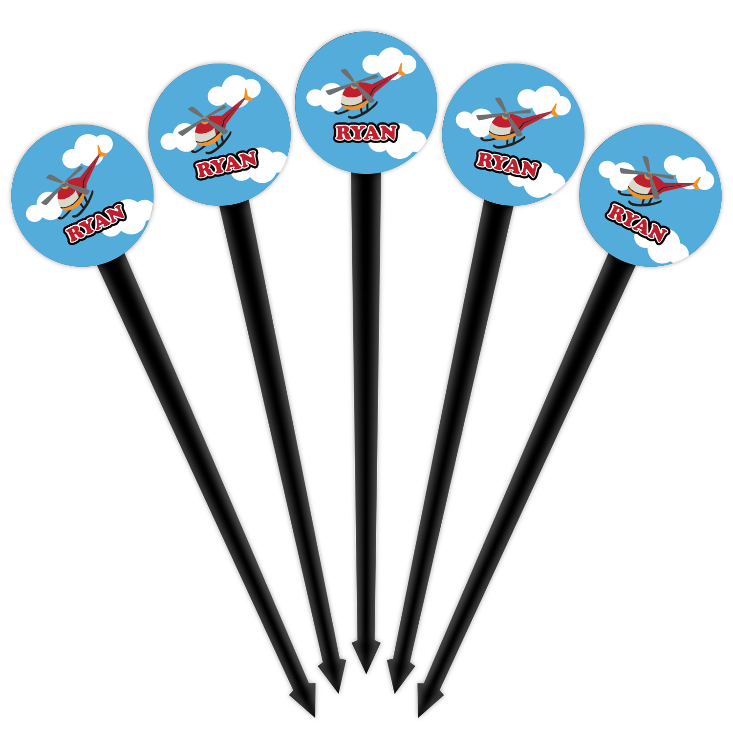 Sky Designs for 4" Round Plastic Food Picks - Black - Single-Sided