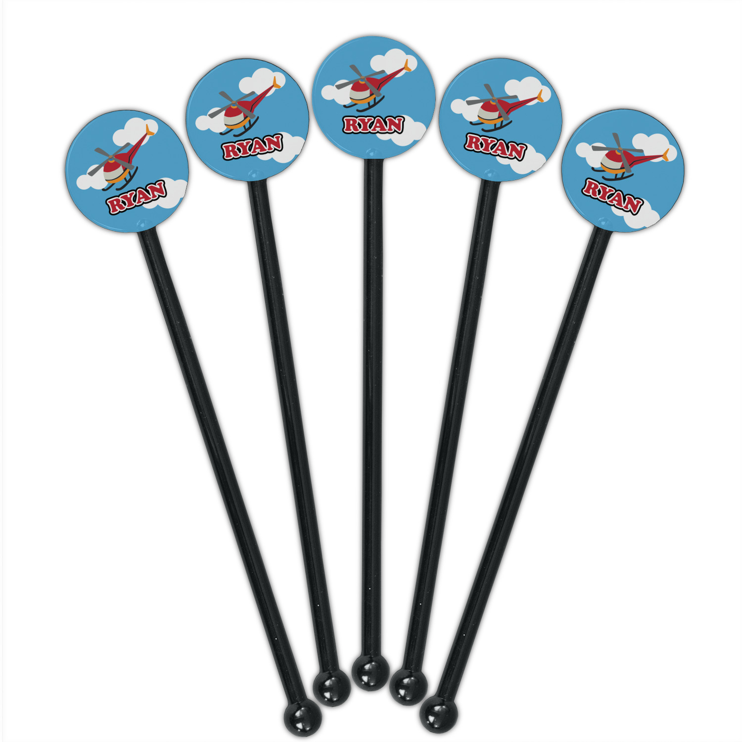 Sky Designs for 5.5" Round Plastic Stir Sticks - Black - Single-Sided