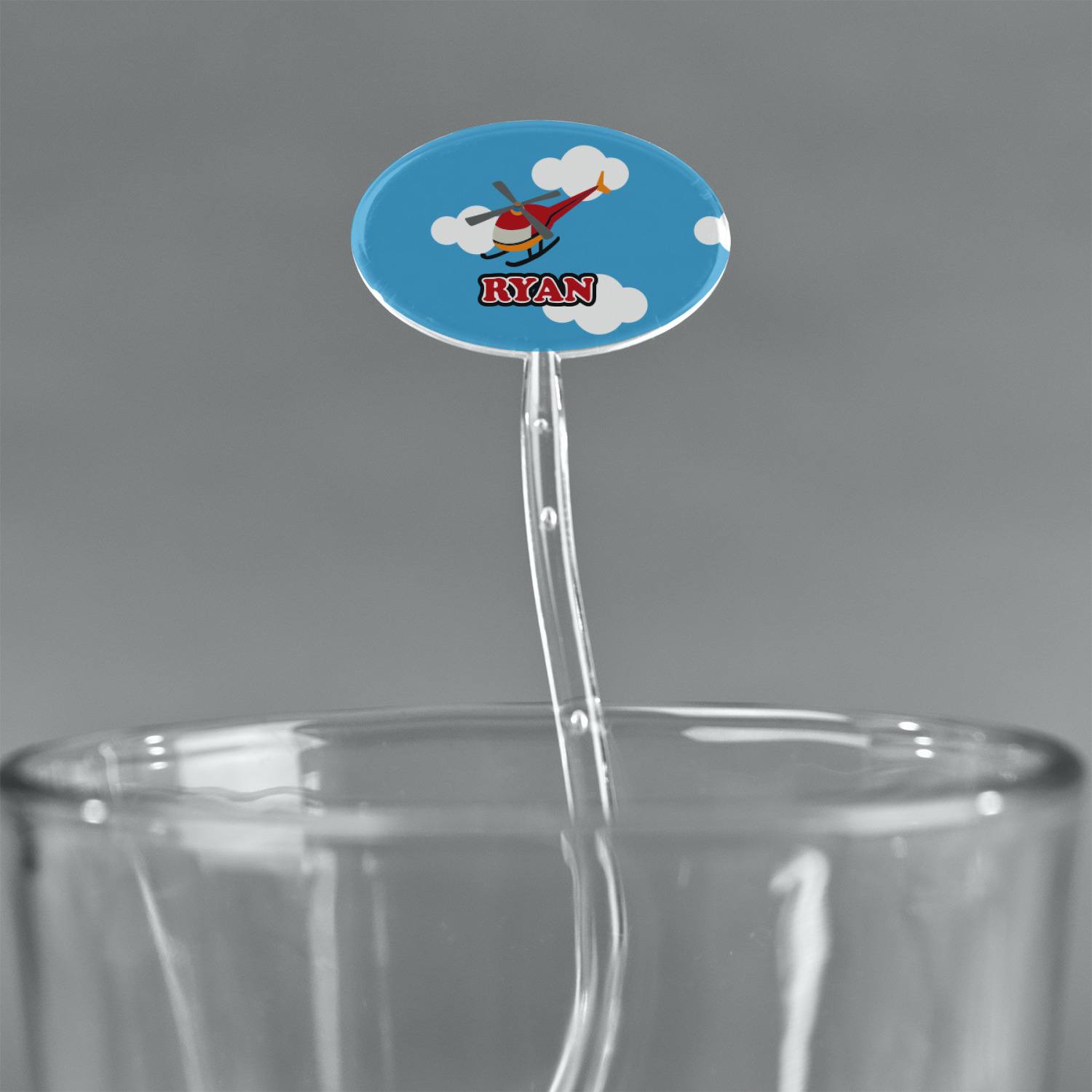 Calling all aviation enthusiast! Soaring through on a backdrop of a beautiful blue cloudy sky is our fun flying helicopter brightly colored in shades of reds and oranges. Don't forget to add that special touch by customizing the design with the name of your choice.