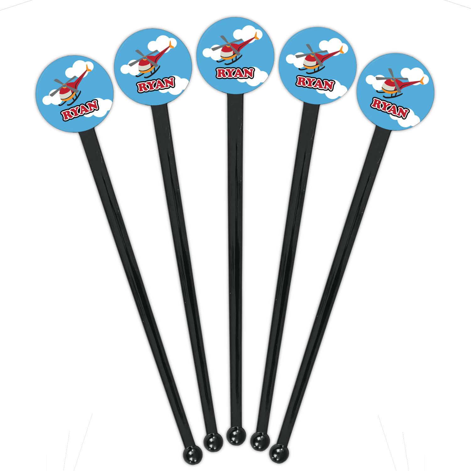 Sky Designs for 7" Round Plastic Stir Sticks - Black - Single-Sided