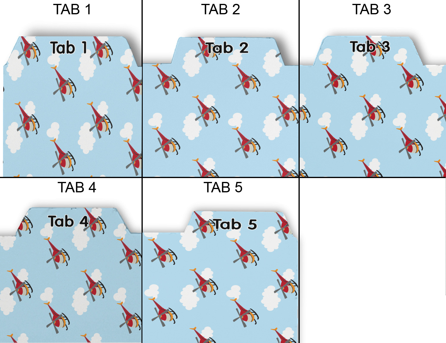 Whether you use binders at school or at work, we have designs to suit all of them. Available in 5 or 6 tab sets, you are sure to find a set to suit your needs. The back of each one is white and can be used to take notes, write vital information on, etc.