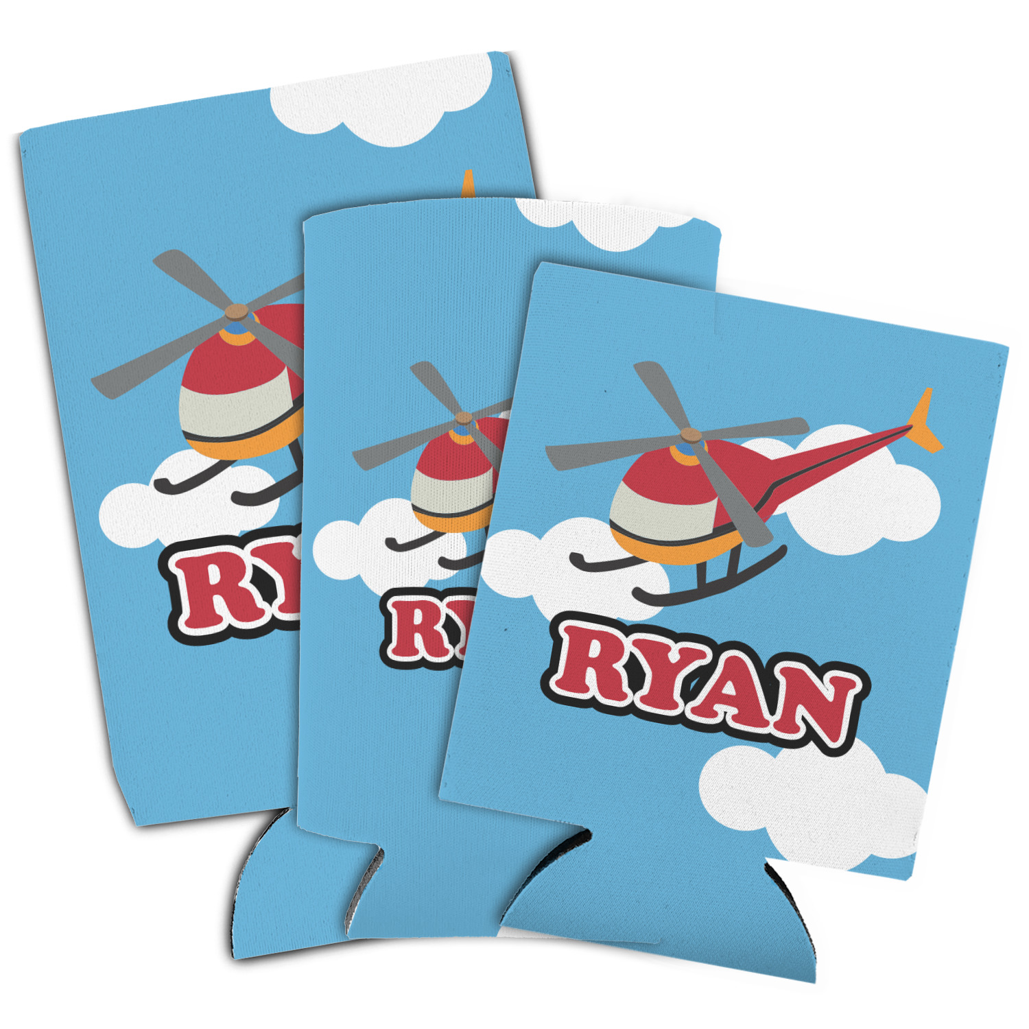 Calling all aviation enthusiast! Soaring through on a backdrop of a beautiful blue cloudy sky is our fun flying helicopter brightly colored in shades of reds and oranges. Don't forget to add that special touch by customizing the design with the name of your choice.