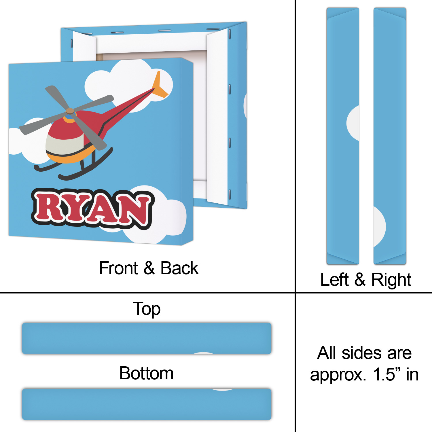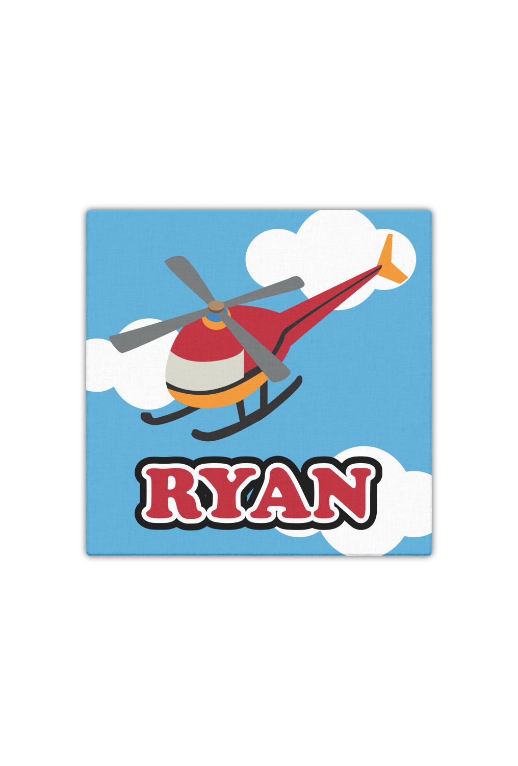 Calling all aviation enthusiast! Soaring through on a backdrop of a beautiful blue cloudy sky is our fun flying helicopter brightly colored in shades of reds and oranges. Don't forget to add that special touch by customizing the design with the name of your choice.