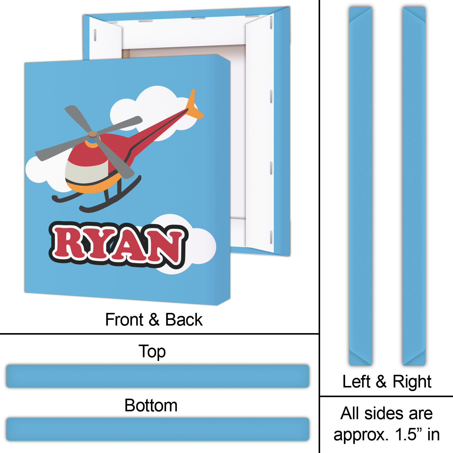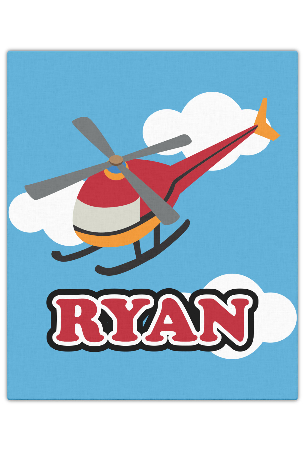 Calling all aviation enthusiast! Soaring through on a backdrop of a beautiful blue cloudy sky is our fun flying helicopter brightly colored in shades of reds and oranges. Don't forget to add that special touch by customizing the design with the name of your choice.