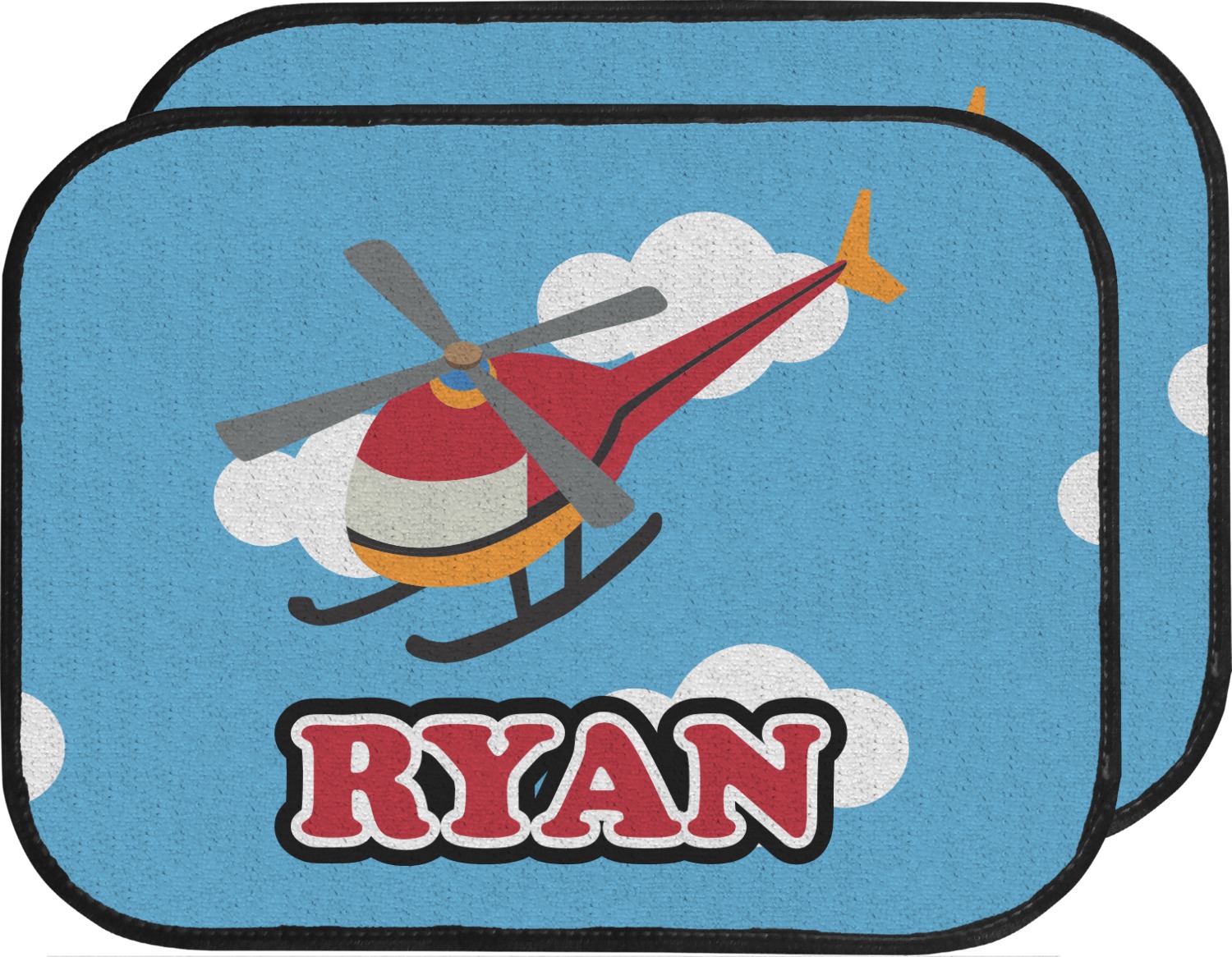 Calling all aviation enthusiast! Soaring through on a backdrop of a beautiful blue cloudy sky is our fun flying helicopter brightly colored in shades of reds and oranges. Don't forget to add that special touch by customizing the design with the name of your choice.