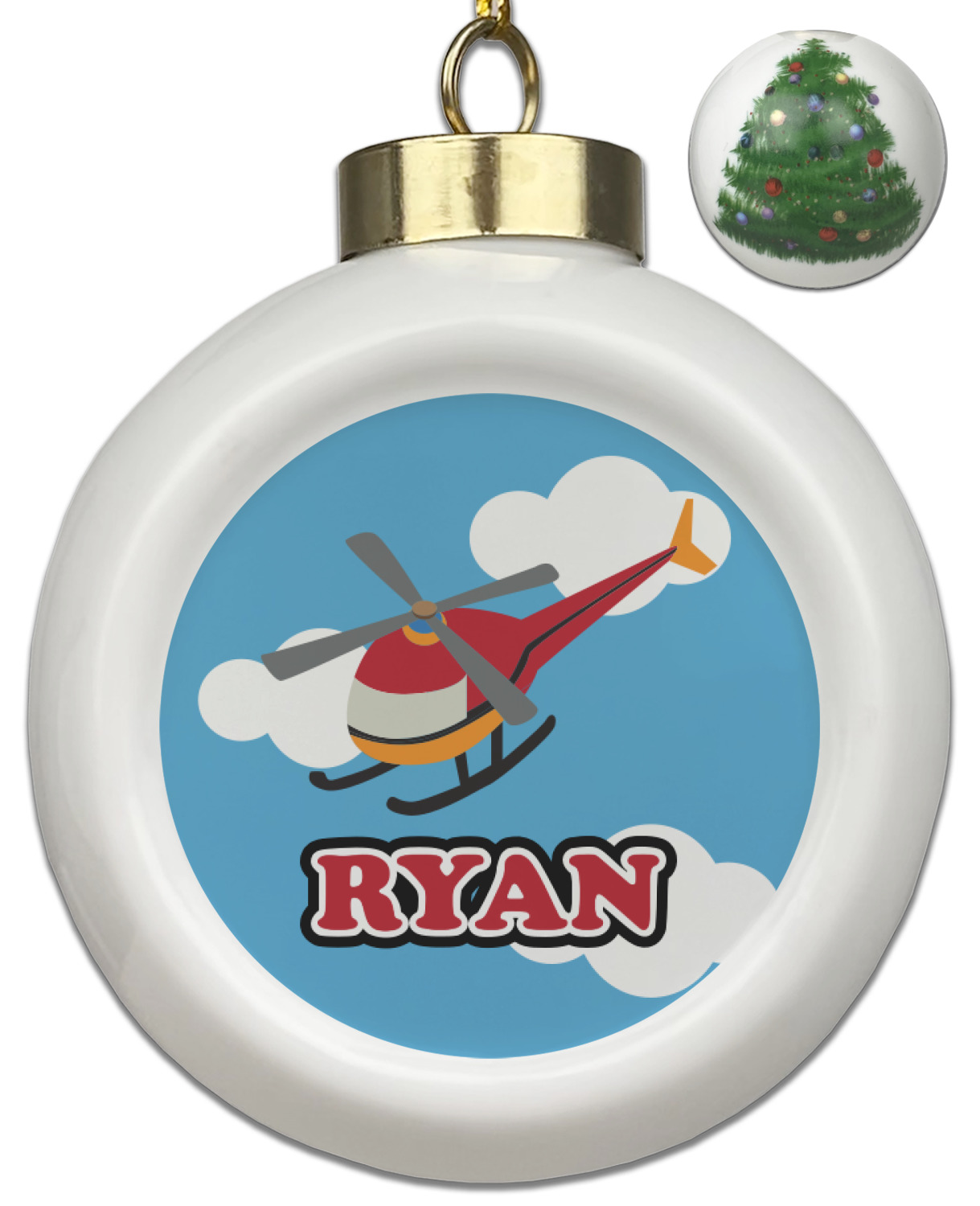 Calling all aviation enthusiast! Soaring through on a backdrop of a beautiful blue cloudy sky is our fun flying helicopter brightly colored in shades of reds and oranges. Don't forget to add that special touch by customizing the design with the name of your choice.