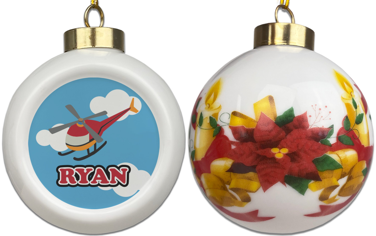 Our Christmas ornaments are a unique ceramic ball shape with a twist as it has a flat face to display your custom design! Select from one of our two design types - Christmas Tree or Poinsettia Garland - to adorn the curved back of your personal design. Each ornament measures 3H x 2.5W x 2D accompanied with a gold string accent for finishing touches to hang on your beautiful Christmas tree!
