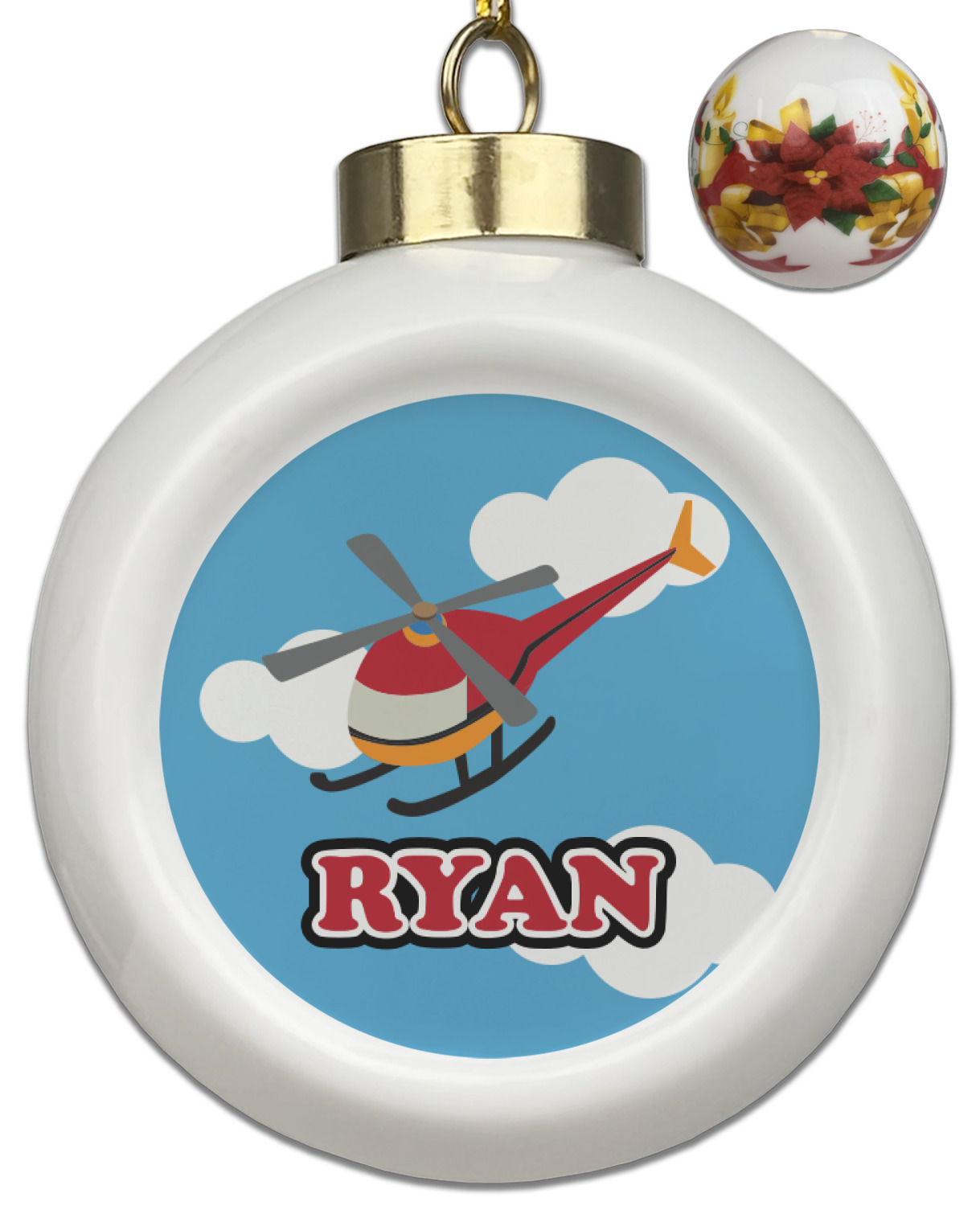 Calling all aviation enthusiast! Soaring through on a backdrop of a beautiful blue cloudy sky is our fun flying helicopter brightly colored in shades of reds and oranges. Don't forget to add that special touch by customizing the design with the name of your choice.