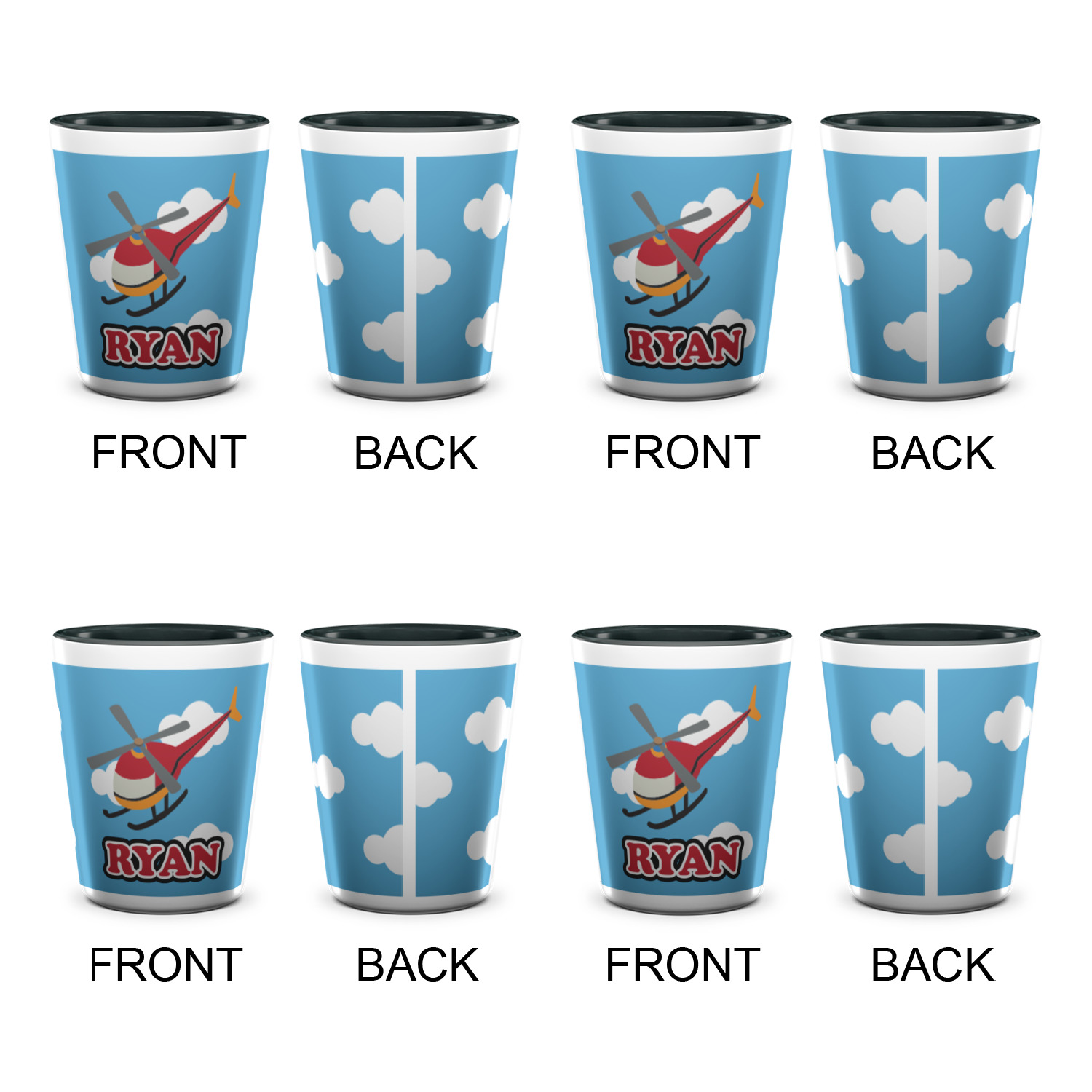 Made from ceramic these shot glasses are printed in full color with the design of your choice. These are a standard 1.5oz size and stand 2.25" tall. Available in a full white ceramic or a two-tone with a black color inside the shot glass. Buy a single or a set of 4, all of which can be designed separately to get you just what you want and need.