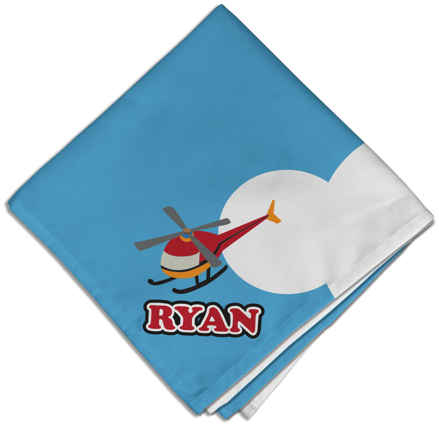 Calling all aviation enthusiast! Soaring through on a backdrop of a beautiful blue cloudy sky is our fun flying helicopter brightly colored in shades of reds and oranges. Don't forget to add that special touch by customizing the design with the name of your choice.