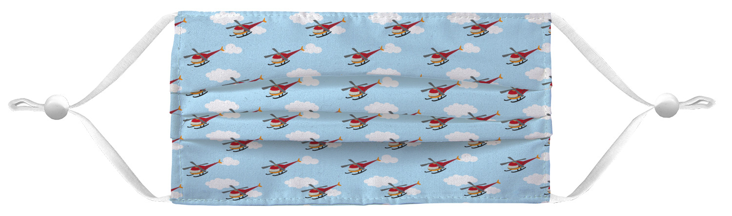 These fun face masks are 7" wide and 3.5" high. They feature pleats, adjustable ear loops, and are made with two layers of fabric. The top layer where your design is printed is a breathable polyester sheeting, while the inside layer is a soft microfiber polyester