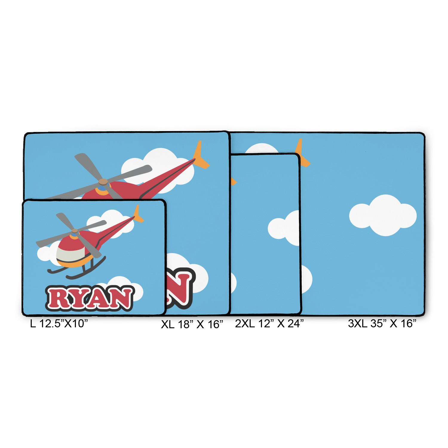 Calling all aviation enthusiast! Soaring through on a backdrop of a beautiful blue cloudy sky is our fun flying helicopter brightly colored in shades of reds and oranges. Don't forget to add that special touch by customizing the design with the name of your choice.