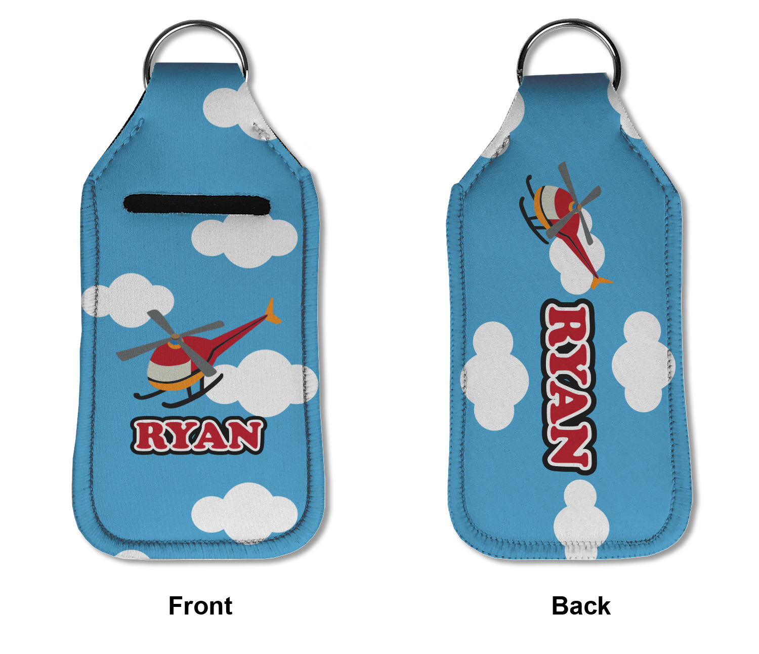 Each hand sanitizer holder comes with its own empty travel-sized, refillable hand sanitizer sure to fit snug in your customized sanitizer case! Our hand sanitizer cases are a durable, yet soft neoprene material sure to last any daily activities or travel agenda. Customize and personalize a hand sanitizer bottle holder with one of our two sizes - small (4.25" x 2.25") or large (5.5" x 2.5"). Each travel sanitizer holder comes with a keyring for attachment on bags, keys, or more!
