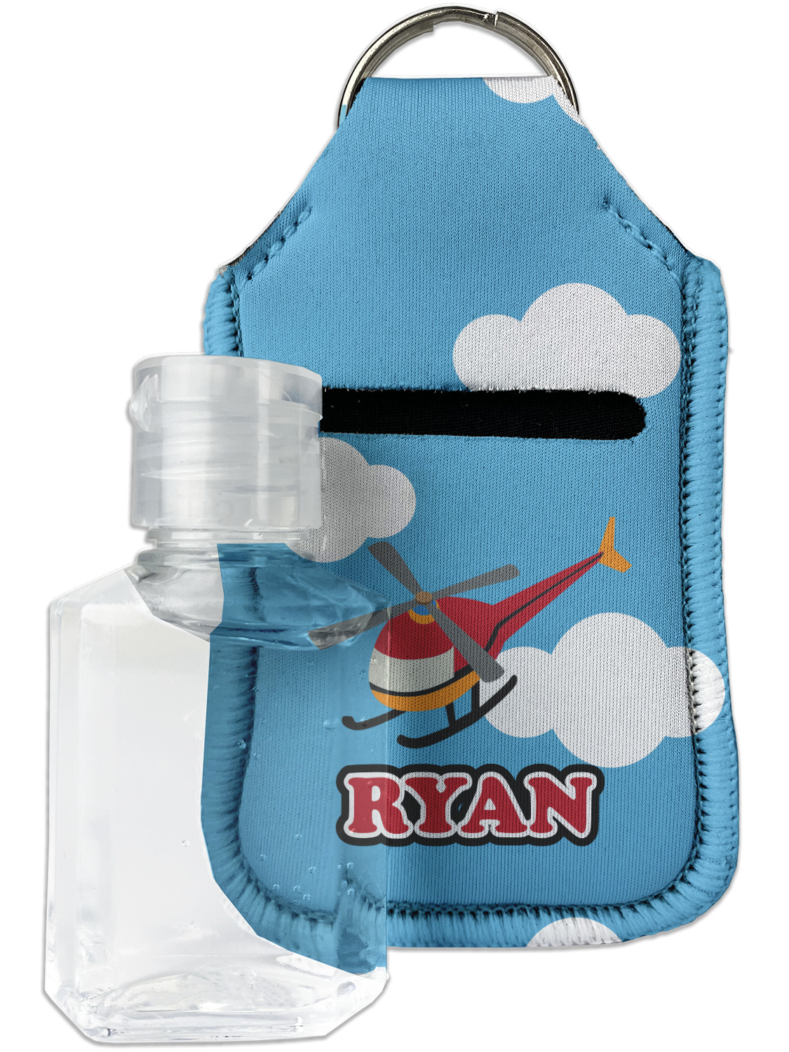 Each hand sanitizer holder comes with its own empty travel-sized, refillable hand sanitizer sure to fit snug in your customized sanitizer case! Our hand sanitizer cases are a durable, yet soft neoprene material sure to last any daily activities or travel agenda. Customize and personalize a hand sanitizer bottle holder with one of our two sizes - small (4.25" x 2.25") or large (5.5" x 2.5"). Each travel sanitizer holder comes with a keyring for attachment on bags, keys, or more!