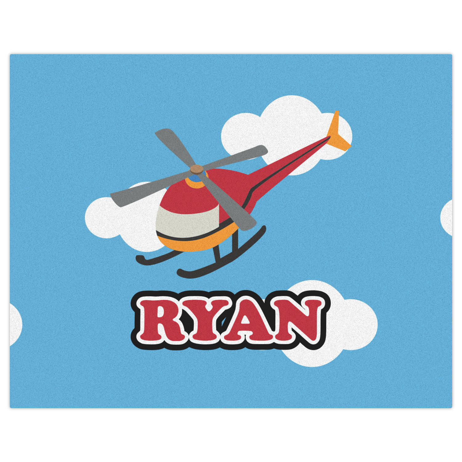 Calling all aviation enthusiast! Soaring through on a backdrop of a beautiful blue cloudy sky is our fun flying helicopter brightly colored in shades of reds and oranges. Don't forget to add that special touch by customizing the design with the name of your choice.