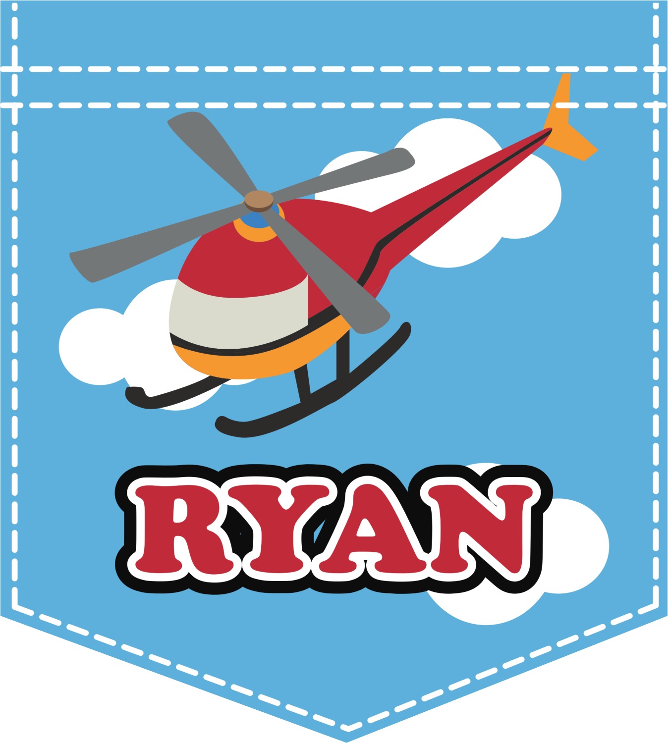 Calling all aviation enthusiast! Soaring through on a backdrop of a beautiful blue cloudy sky is our fun flying helicopter brightly colored in shades of reds and oranges. Don't forget to add that special touch by customizing the design with the name of your choice.