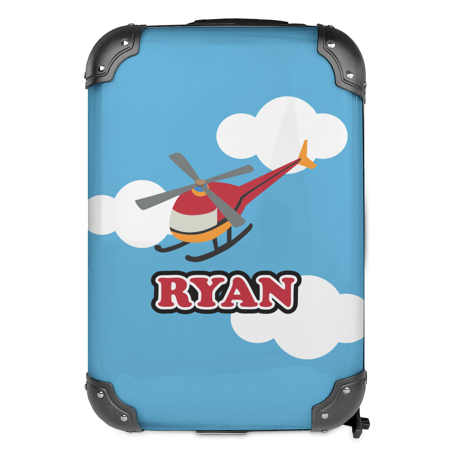 Calling all aviation enthusiast! Soaring through on a backdrop of a beautiful blue cloudy sky is our fun flying helicopter brightly colored in shades of reds and oranges. Don't forget to add that special touch by customizing the design with the name of your choice.