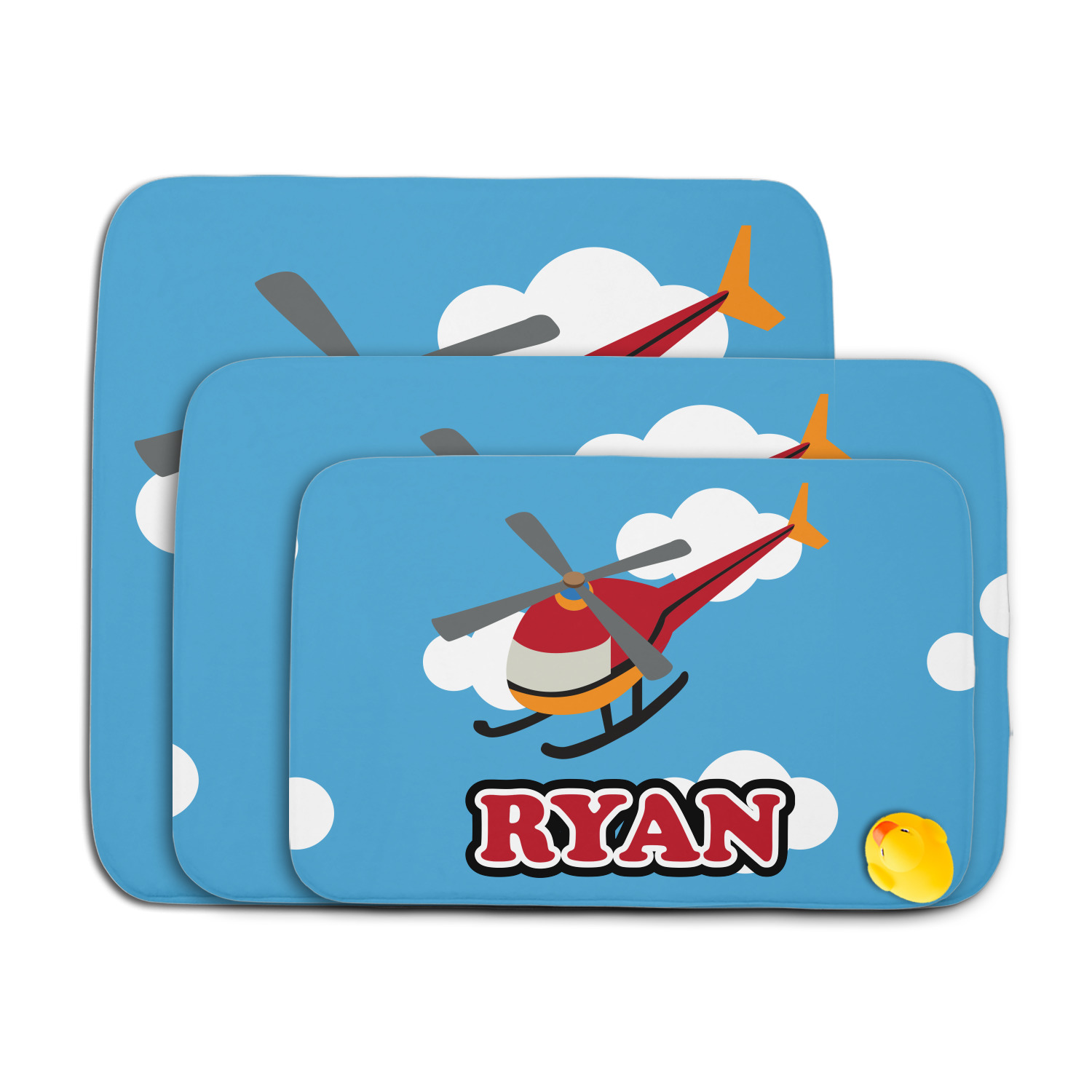 Calling all aviation enthusiast! Soaring through on a backdrop of a beautiful blue cloudy sky is our fun flying helicopter brightly colored in shades of reds and oranges. Don't forget to add that special touch by customizing the design with the name of your choice.