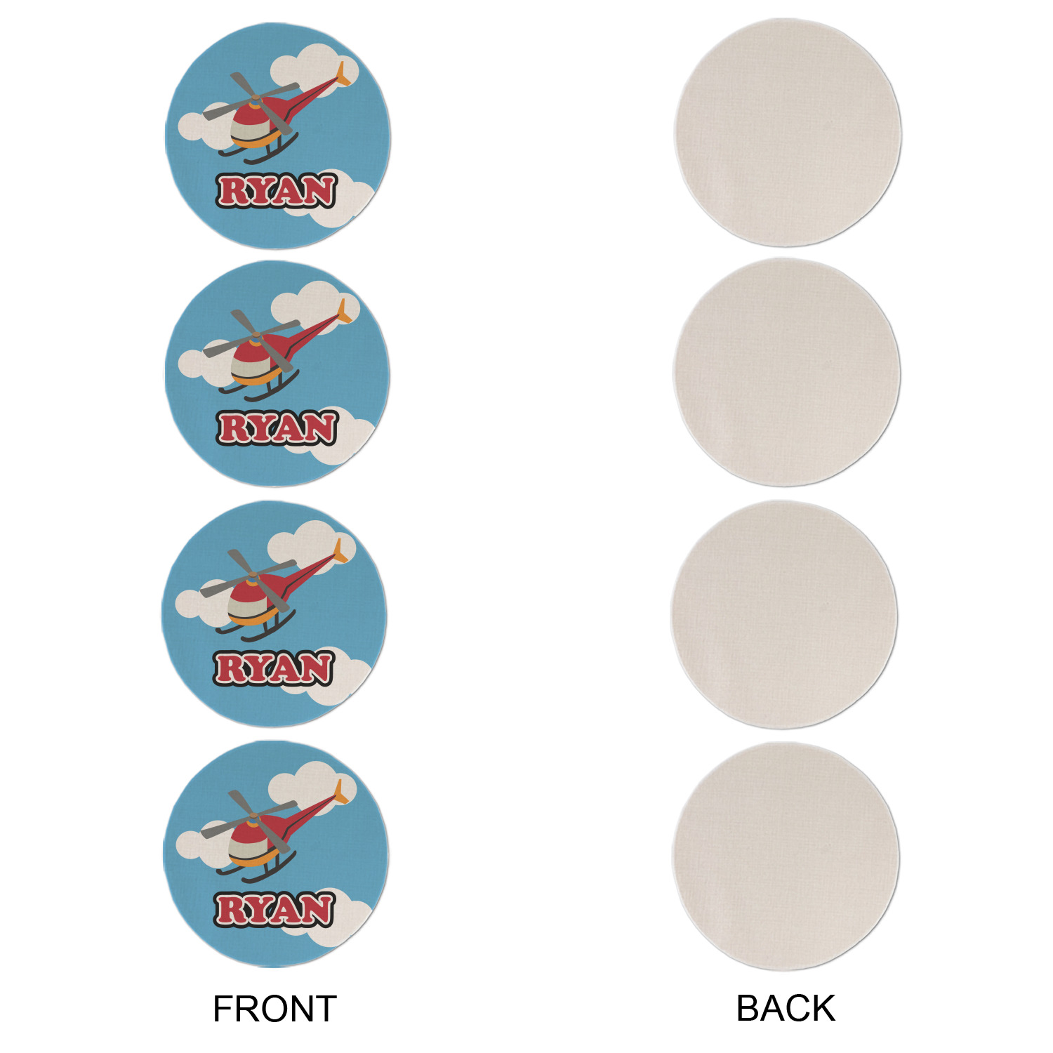 Calling all aviation enthusiast! Soaring through on a backdrop of a beautiful blue cloudy sky is our fun flying helicopter brightly colored in shades of reds and oranges. Don't forget to add that special touch by customizing the design with the name of your choice.