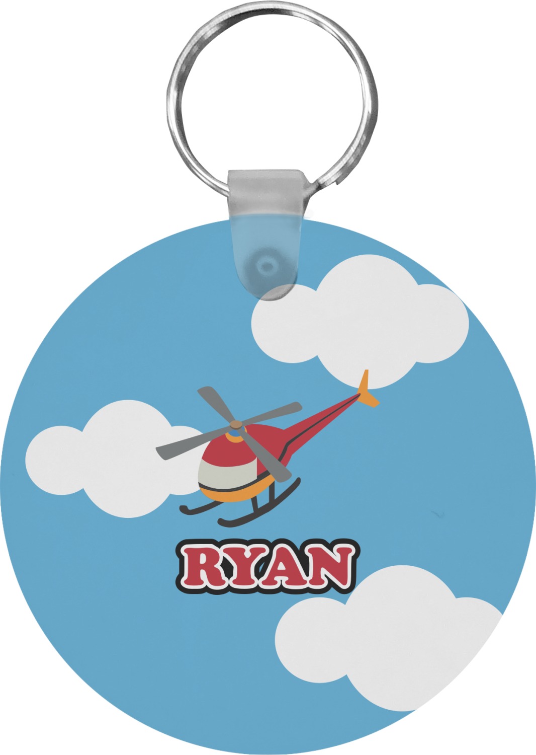 Calling all aviation enthusiast! Soaring through on a backdrop of a beautiful blue cloudy sky is our fun flying helicopter brightly colored in shades of reds and oranges. Don't forget to add that special touch by customizing the design with the name of your choice.