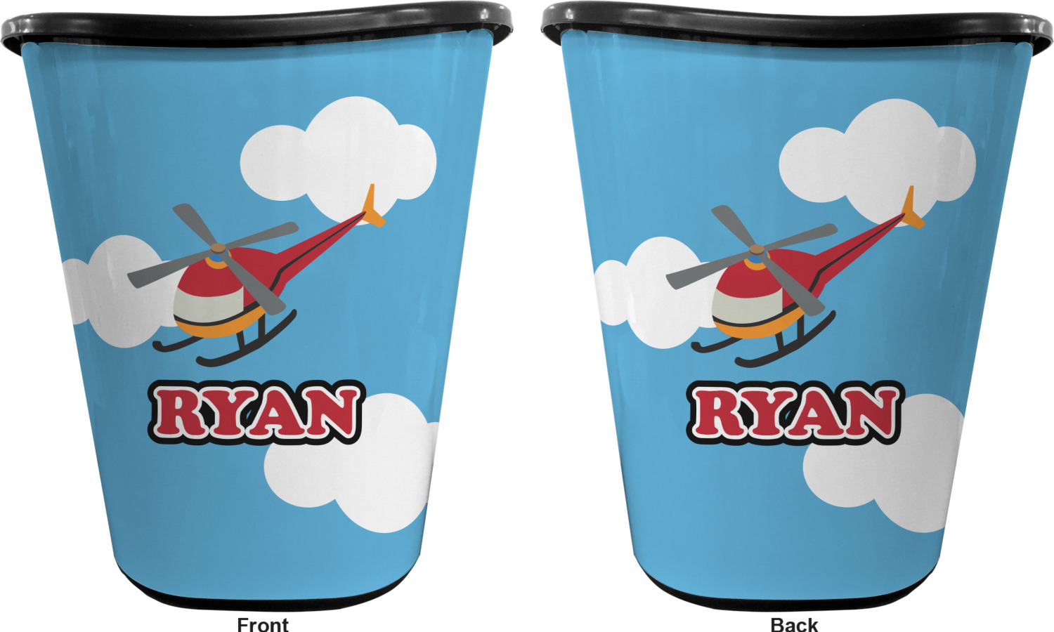 You can choose to purchase these decorative wastebaskets in either a white or a black color that will show on the base and the upper rim. Your customization is printed on a high-gloss, fine-quality vinyl adhesive, and you can choose to either have this adhesive applied to one side only or to both sides. As such, this plastic wastebasket can be single-sided or double-sided, depending on your creative vision. Your customization is printed using durable inks, making the design waterproof and resistant to fading over time.