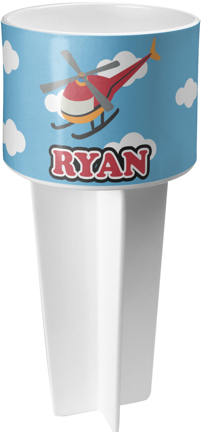 This cup holder has a large stake at its bottom that anchors it to the sand or ground below, while the cup holder rests above the stake. The entire drink holder is made of durable plastic and displays your customization around the cup holder portion. We sell these personalized beach spikers in two different colors: black and white.