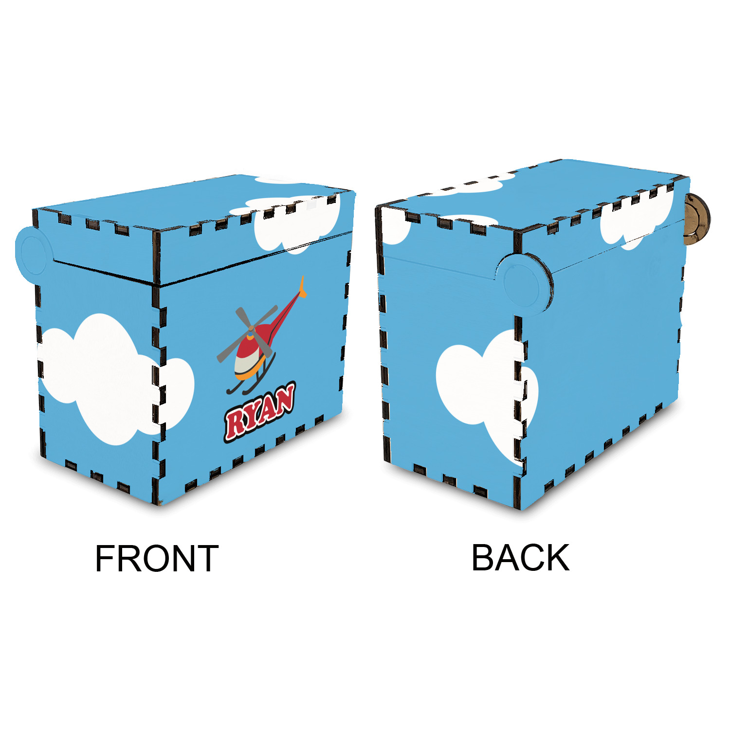 Calling all aviation enthusiast! Soaring through on a backdrop of a beautiful blue cloudy sky is our fun flying helicopter brightly colored in shades of reds and oranges. Don't forget to add that special touch by customizing the design with the name of your choice.