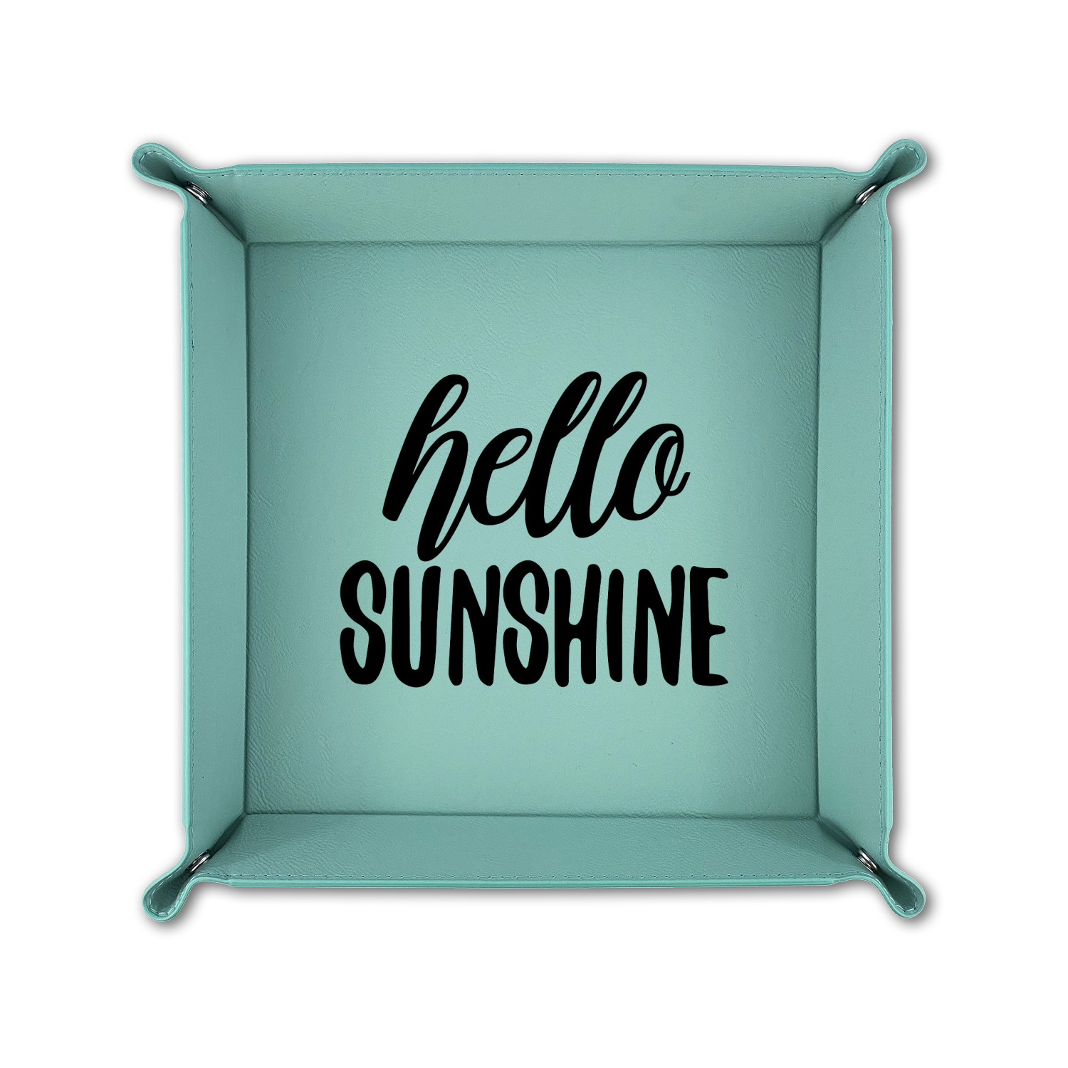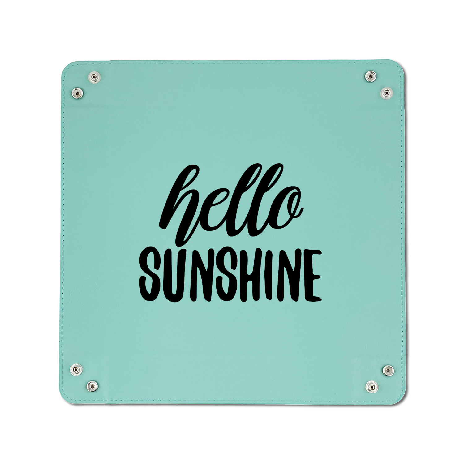 The leatherette wraps the hard board base and sides with flexible hinges to fold the sides up. The corners are secured using silver snaps. The 6in x 6 in tray measures approximately 9.5in x 9.5in when laid flat. The 9in x 9in tray measures approximately 13in x 13in when laid flat.