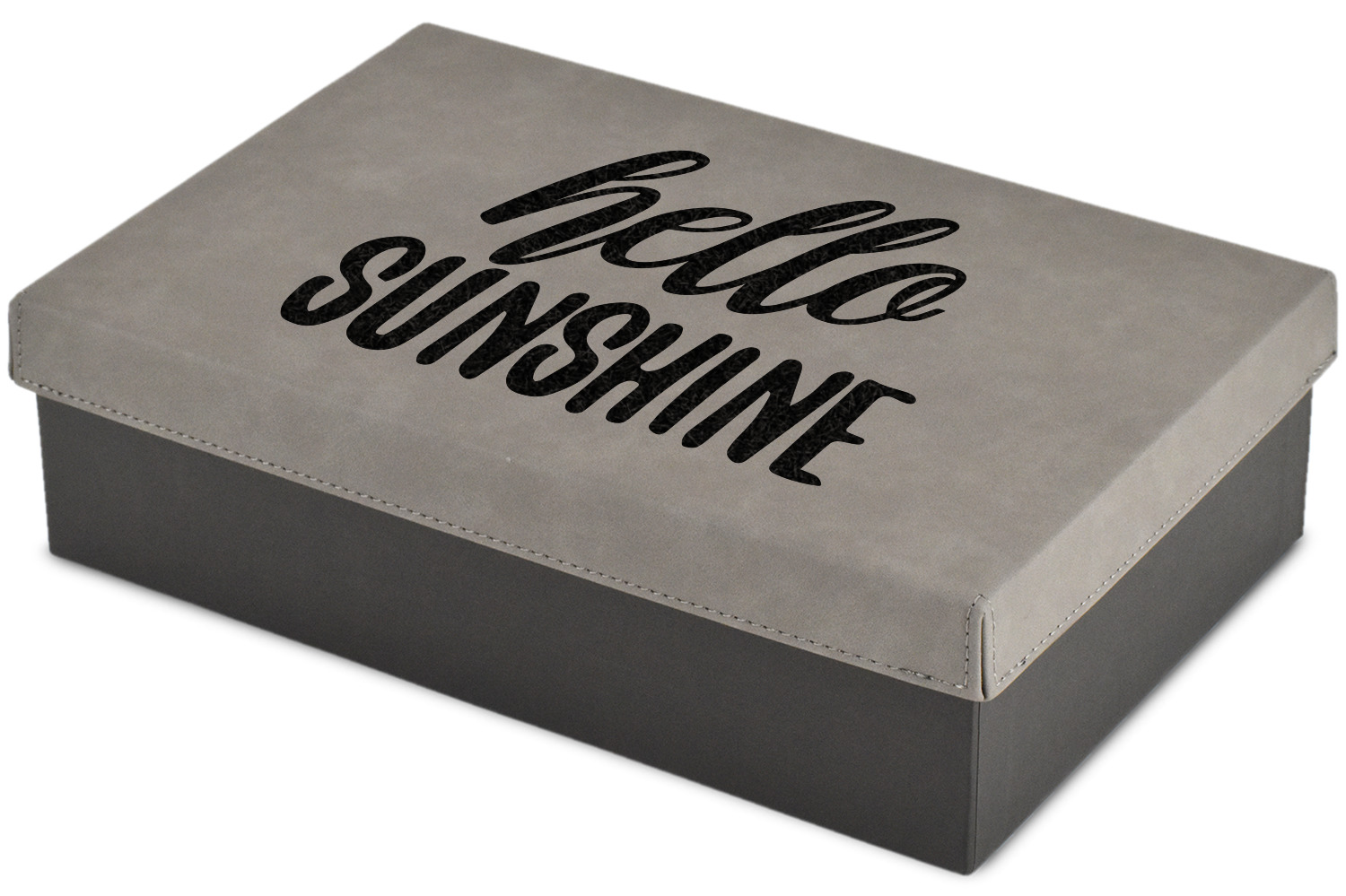 These gift boxes are available in 3 different sizes to accommodate various sized gifts. Available in gray as a neutral color for any occasion as well as to showcase your design boldly. Engraved with a laser this high quality paper board and faux leather gift box is unique and makes any gift stand out.