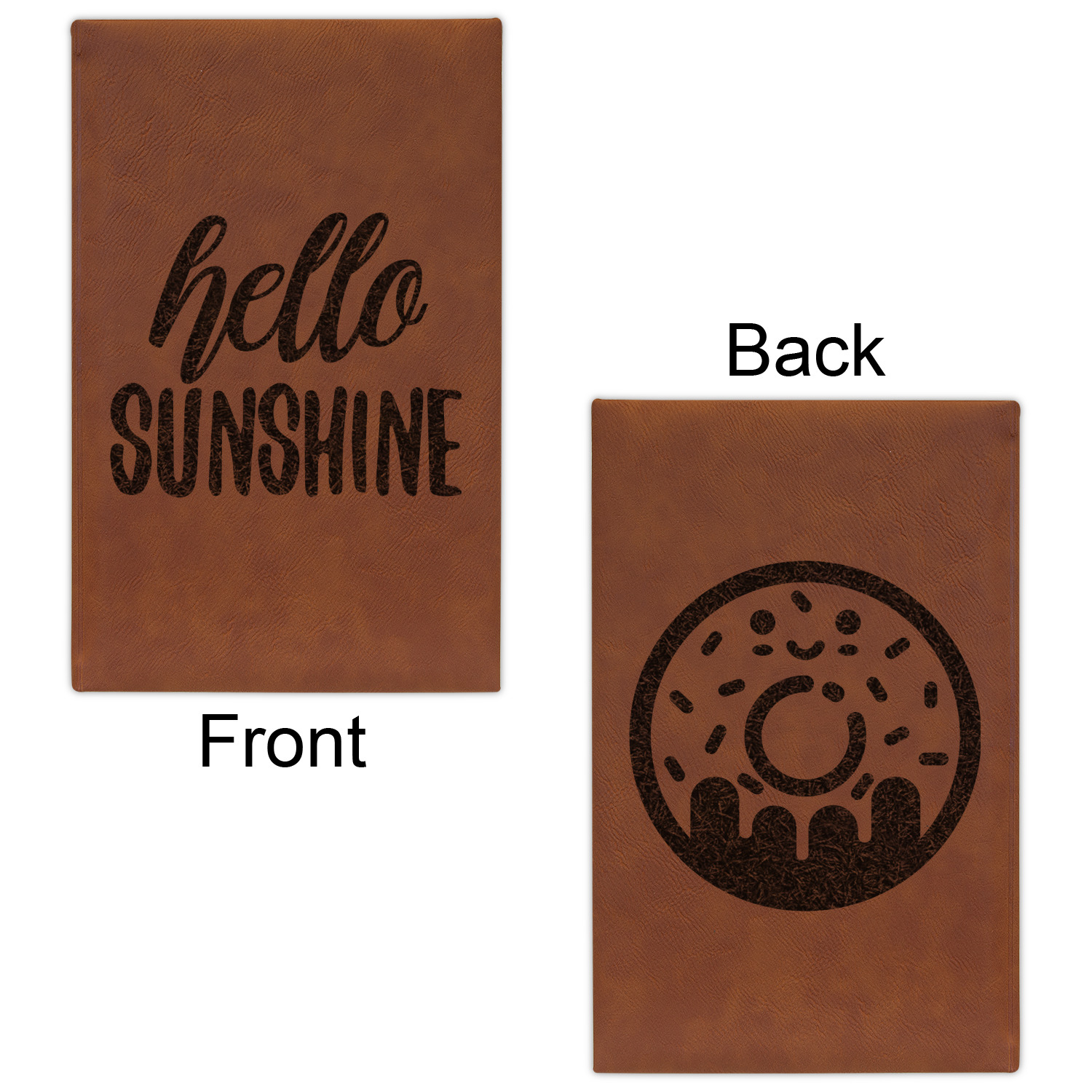 The faux leather covers are a rich cognac / rawhide color and can be customized with your design. From a simple name or monogram or a logo to a detailed mandala - the choice for customization & personalization is truly yours. Customize one of our designs or upload your own.