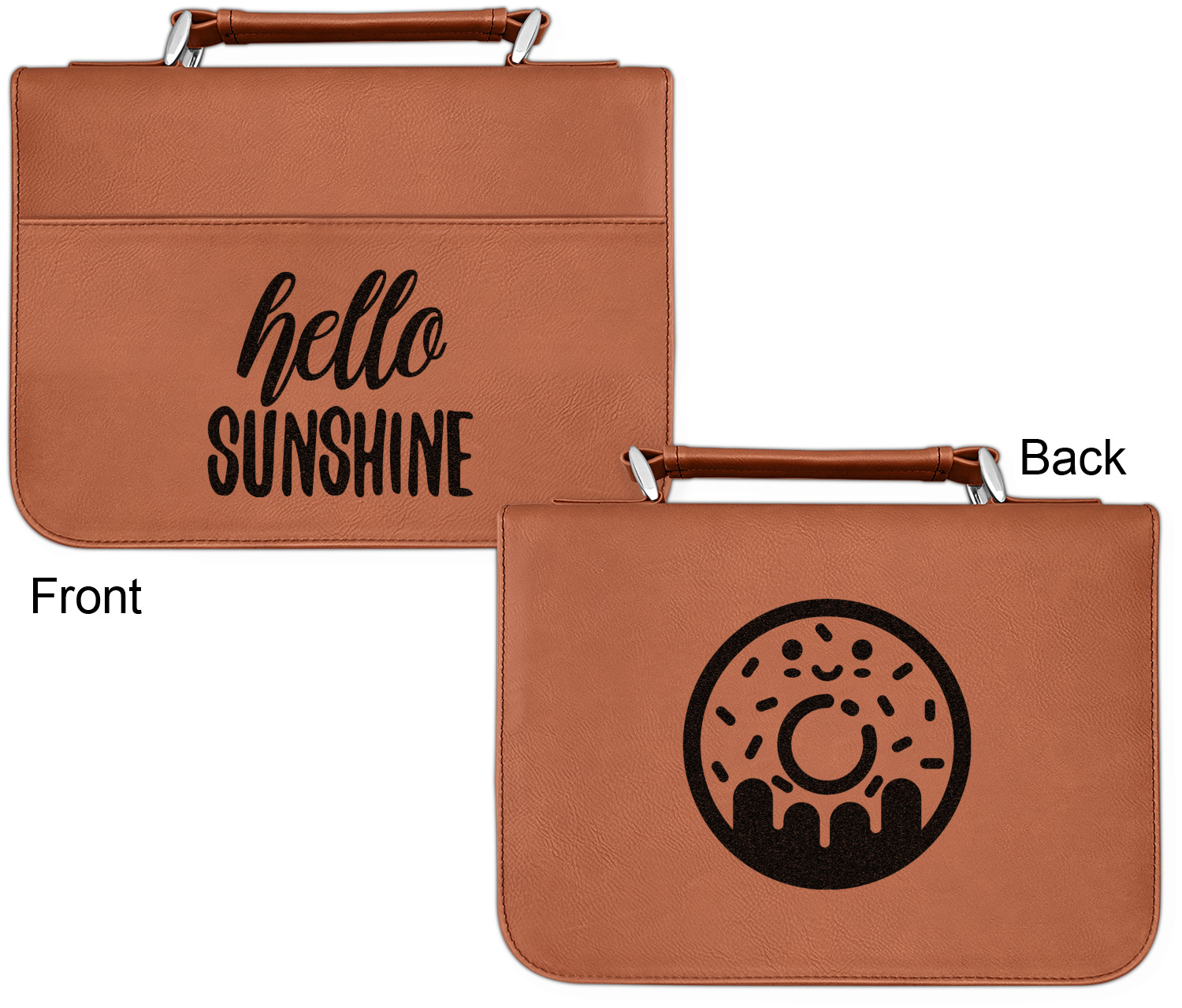 We offer these custom book covers in several variations. First, we offer two different sizes. Our small can accommodate books of up to 8.5" x 6" x 2". The larger size can fit books up to 10" x 7.125" x 2". Both of these sizes can then be customized according to your preference; you can either choose to laser engrave a design on the front and back, or solely the front.