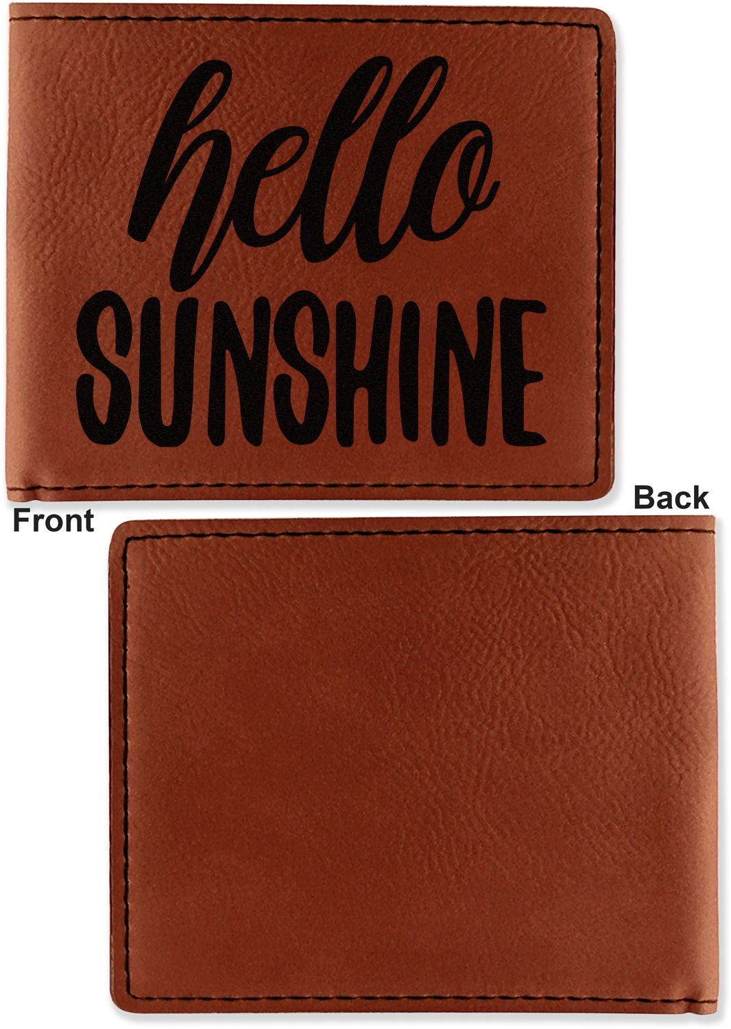 Your bifold wallet will be personalized by laser engraving, which will be a black color on the wallet. Choose a graphic, text, or monogram to personalize your wallet. There are thousands of choices in our design center.