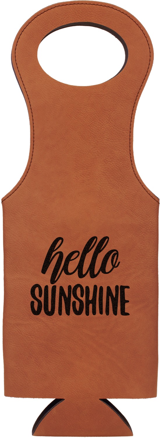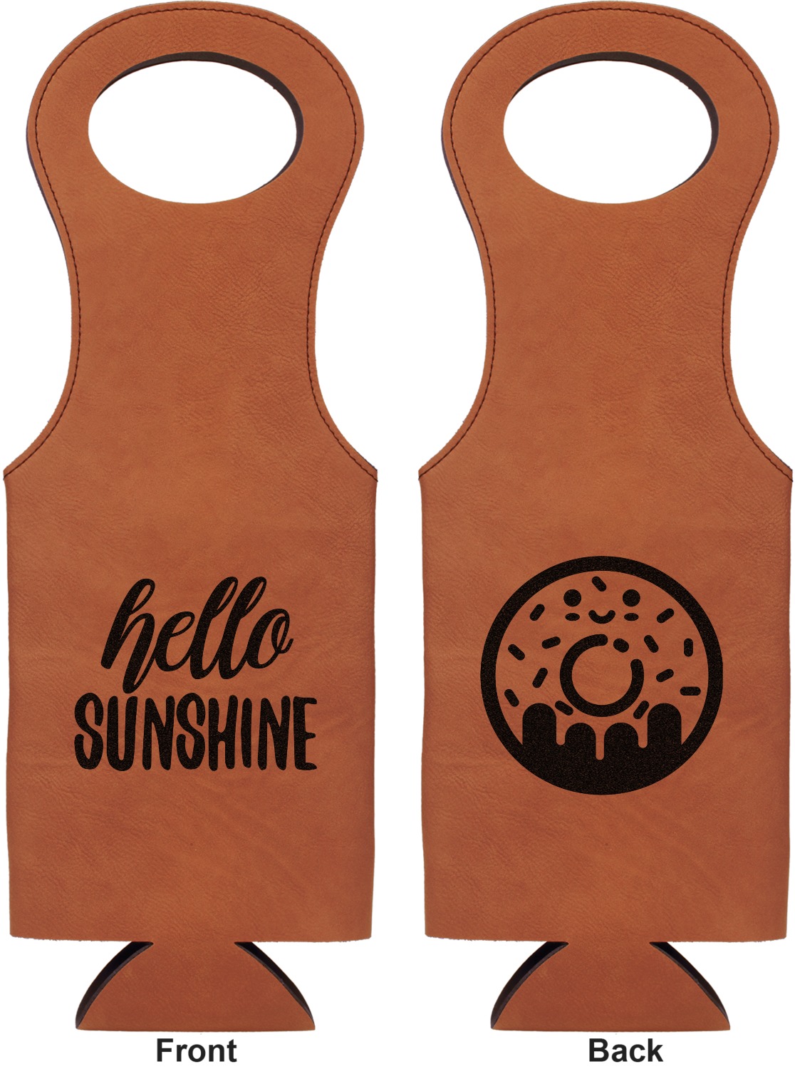 This wine carrier is made from a stunning leatherette, in a cognac-brown color. Strong, black stitching lines the sides of your wine bottle bag and provides extra durability. The interior is lined with a padded, black material to allow for a snug fit once your bottle is placed inside. At the top of this wine gift bag, you'll find two oval shaped handles that elegantly complements the rest of the bag's style. We provide you with the option of laser-engraving the front, or the front and back of your new personalized wine bag!