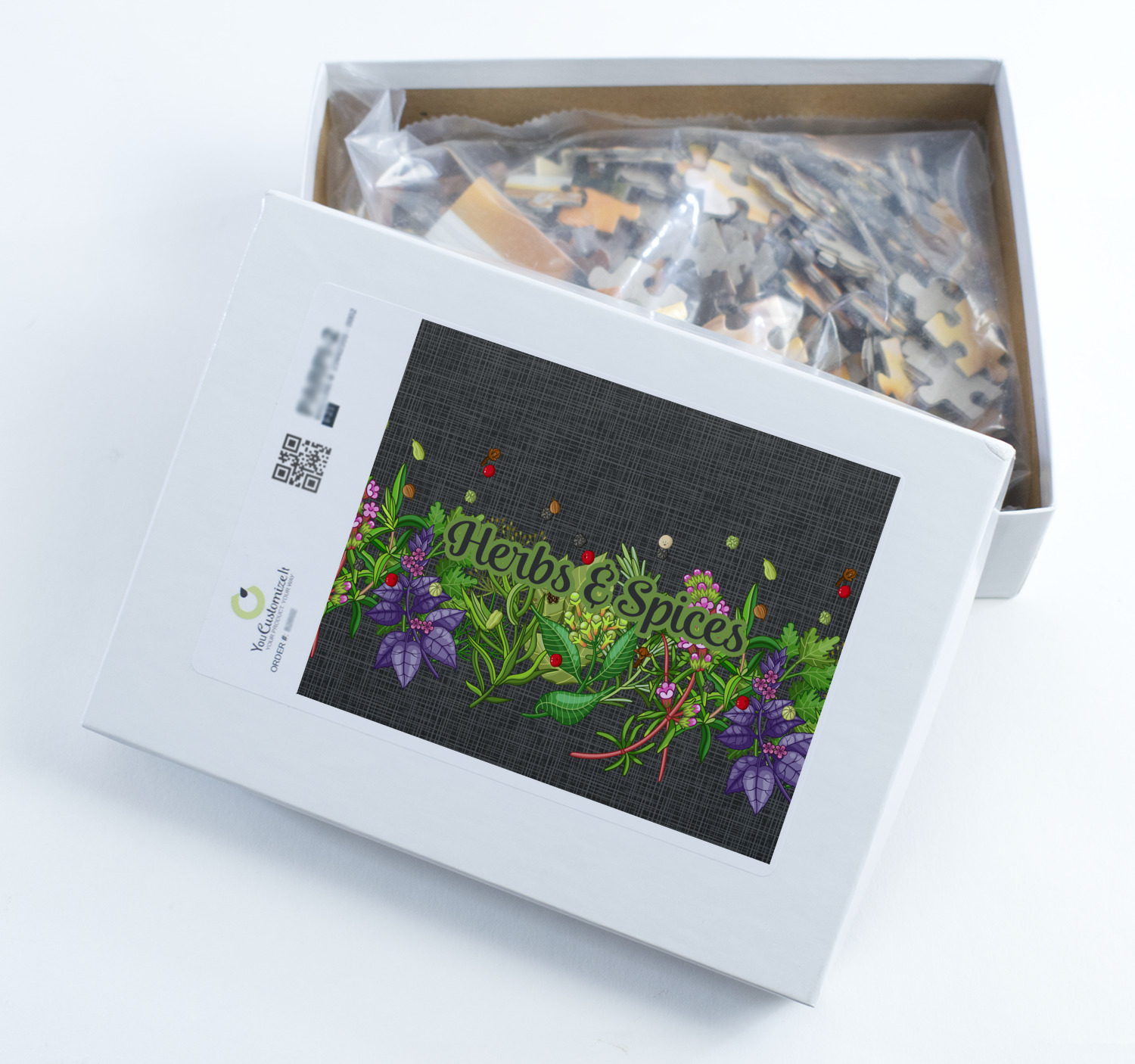 We print our puzzles on thick white chipboard in vibrant colors, then laminate the chipboard and die cut your puzzle. Your jigsaw puzzle is shipped to you in a box with the image of the puzzle on the box.