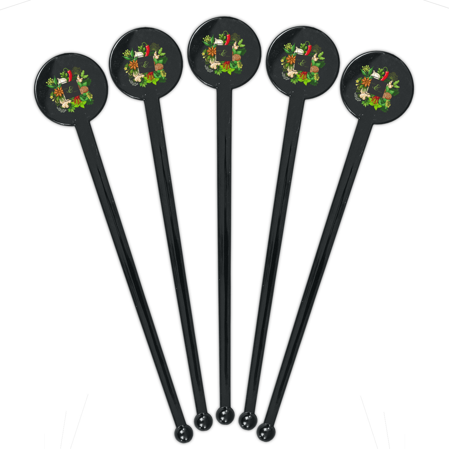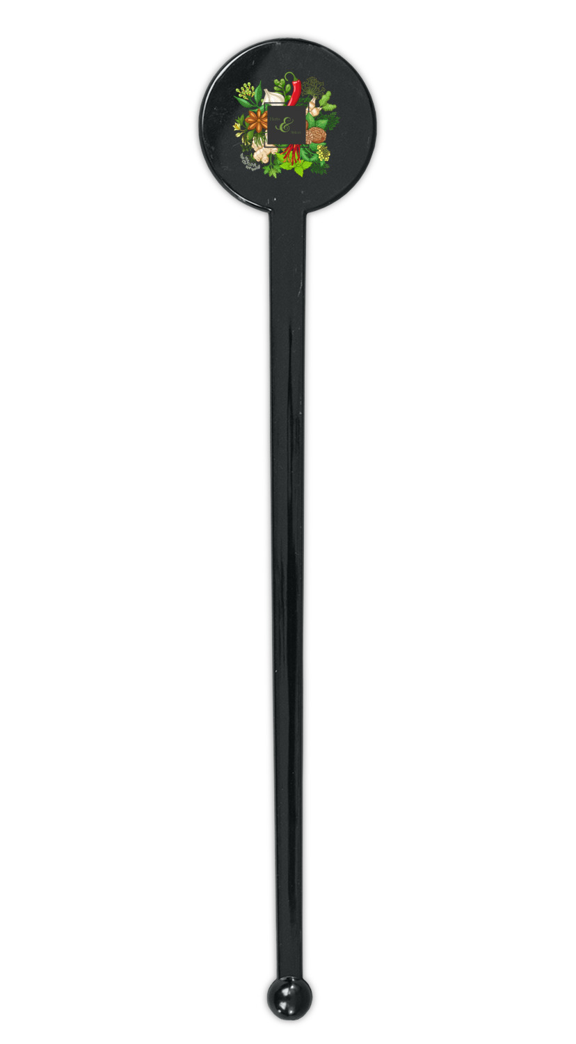 The design features an adorable frame of illustrated peppers, garlic, ginger, and other herbs. The background is a subtle texture in a charcoal color. A fun ribbon made with other spices and herbs makes the coordinating design. Both are easily personalized.