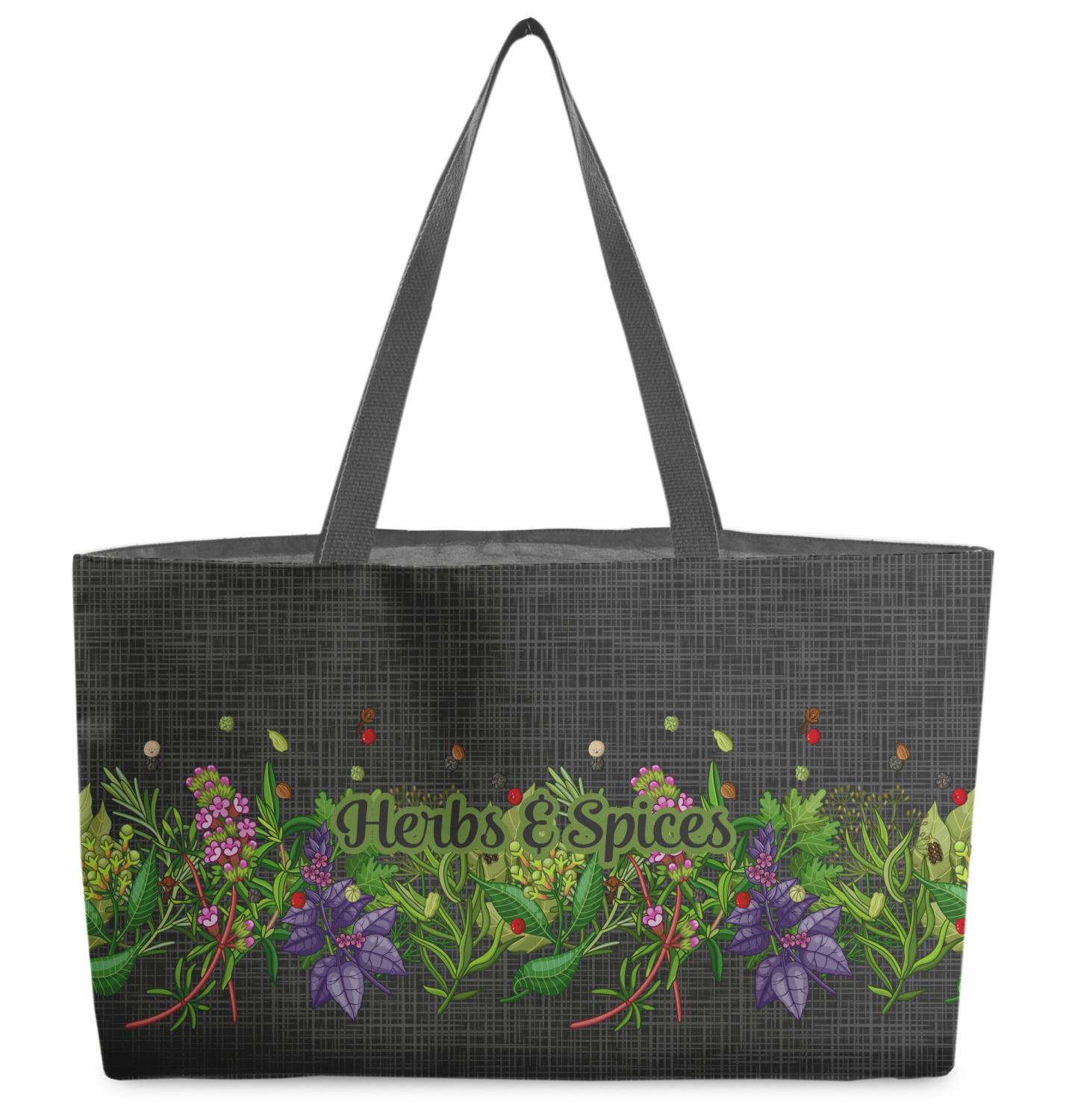 The totes are made from a sturdy canvas material on the outside and are lined with a black poly cotton lining. The beach totes have an approx. 28" black woven handles.