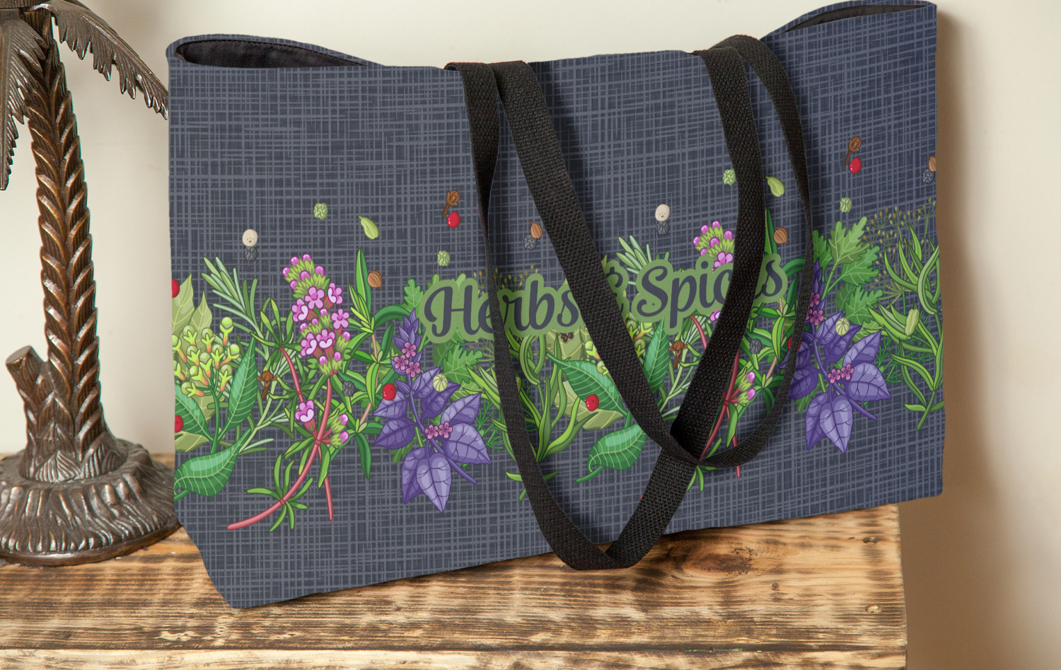 These beach totes are handmade here in the USA. Fabric is printed with your design. The tote is then sewn from the fabric pieces, lining and handles added.