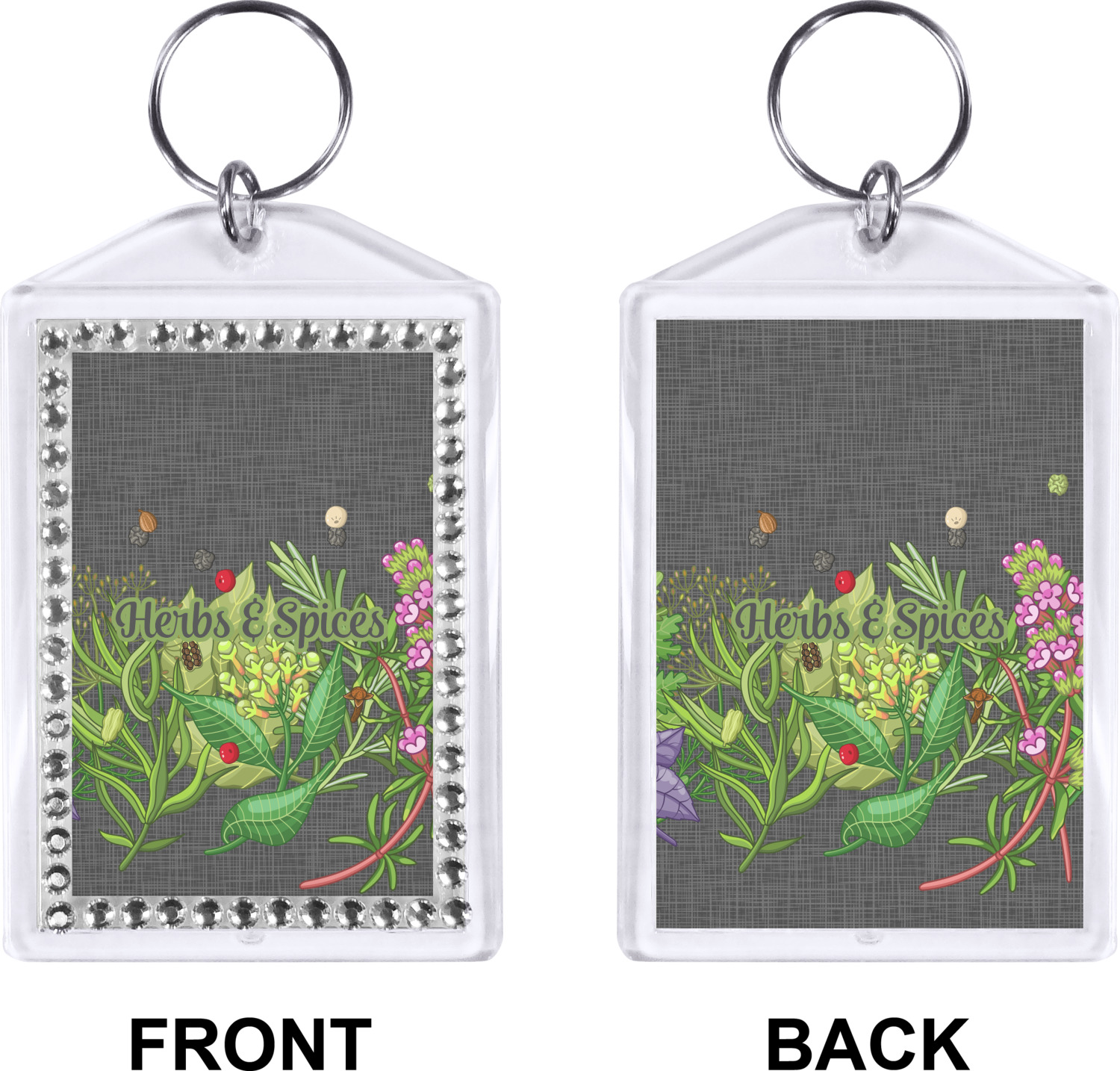 Our personalized keychains have a bold, rectangular shape, outlined by a series of shimmering rhinestones. A metal, split keyring is included with your purchase, and an additional metal hoop allows for attachment of the keychain to the split ring. This unique keychain measures at about 3.75 by 2.5 inches. We print your customized design(s) across both the back and front of this keychain.