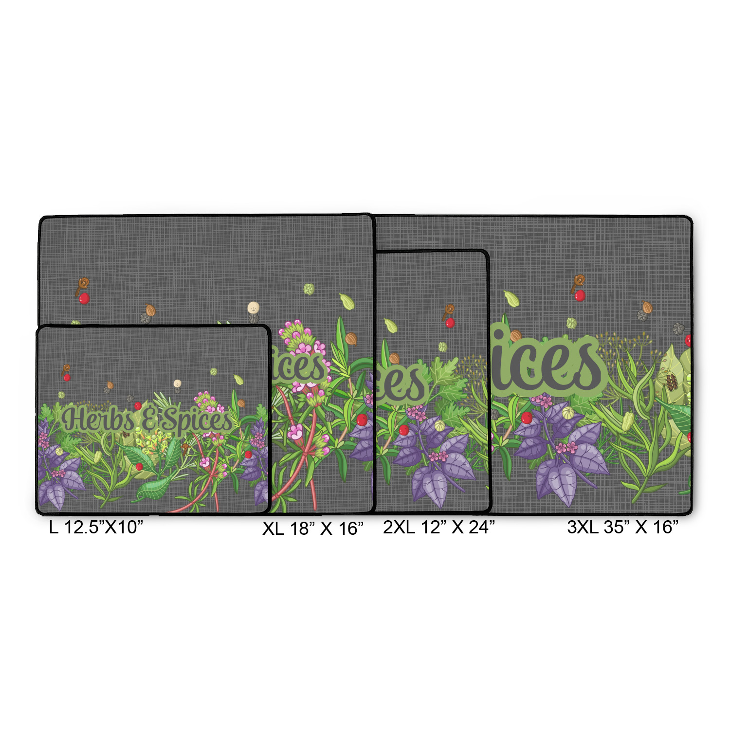The design features an adorable frame of illustrated peppers, garlic, ginger, and other herbs. The background is a subtle texture in a charcoal color. A fun ribbon made with other spices and herbs makes the coordinating design. Both are easily personalized.
