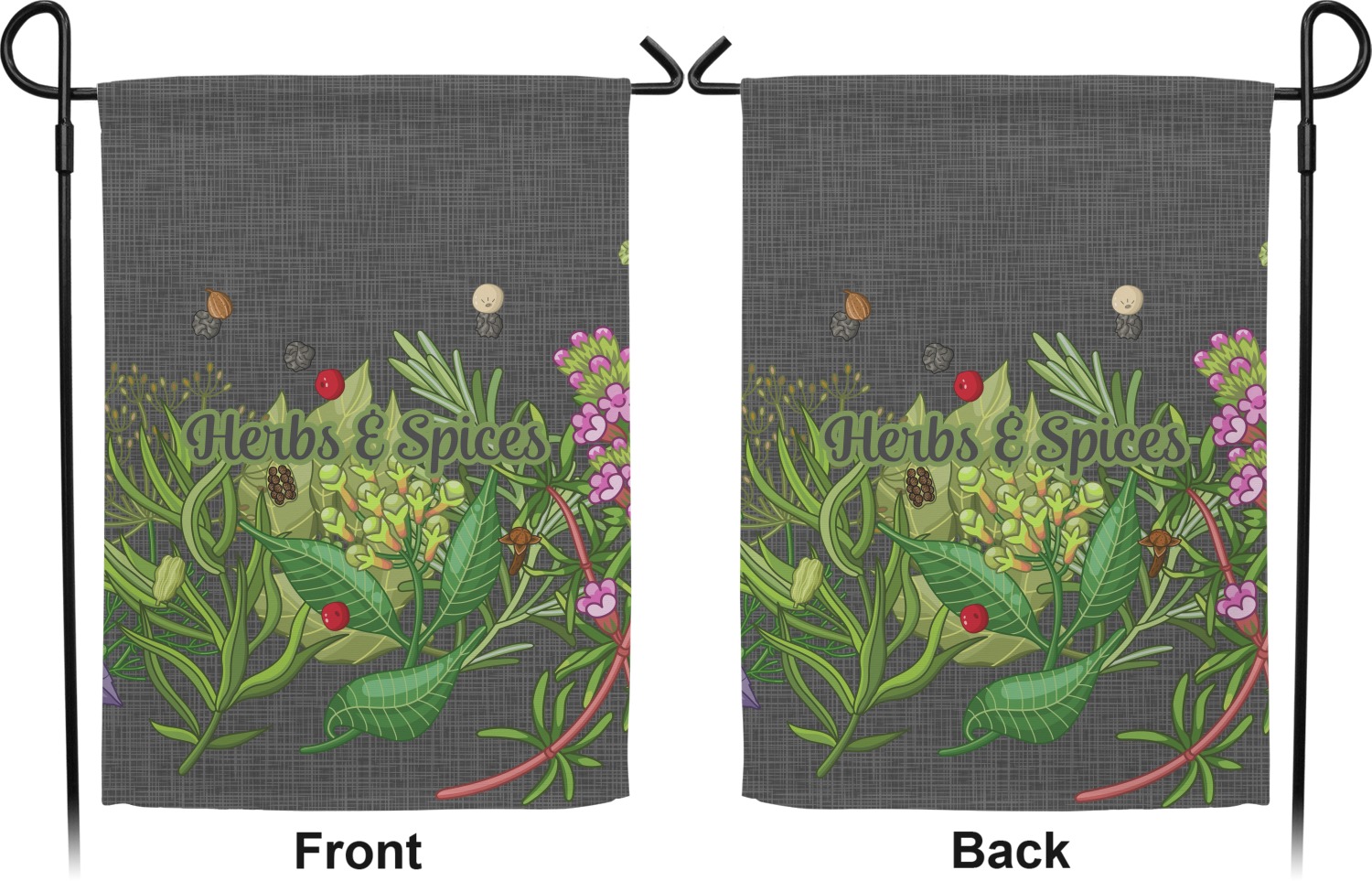 These custom garden flags are made of a durable, double-ply, polyester weave, allowing them to withstand the elements year round. The small flags measure at approximately 12 by 18 inches. The large flags measure out to 28 by 37 inches. You can order these decorative flags with your customization printed on the front only, or the front and back.