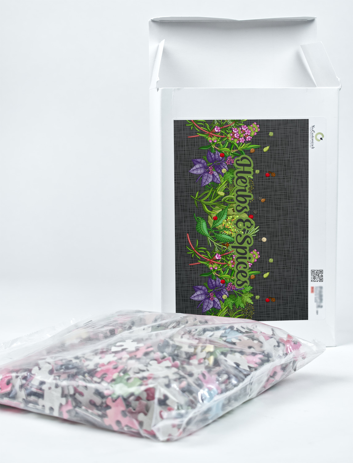 We print our puzzles on thick white chipboard in vibrant colors, then laminate the chipboard and die cut your puzzle. Your jigsaw puzzle is shipped to you in a box with the image of the puzzle on the box.