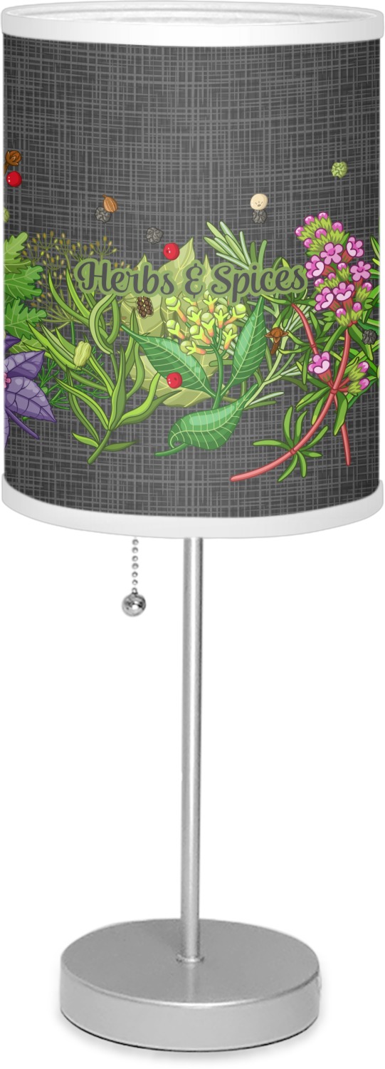 The design features an adorable frame of illustrated peppers, garlic, ginger, and other herbs. The background is a subtle texture in a charcoal color. A fun ribbon made with other spices and herbs makes the coordinating design. Both are easily personalized.