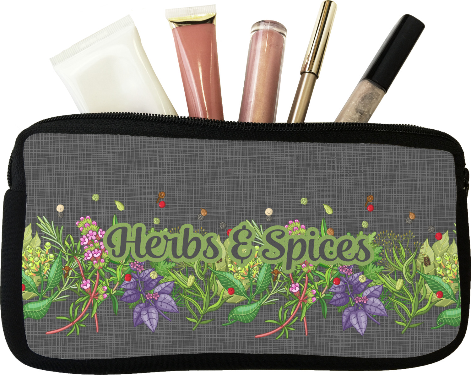 Our personalized makeup bags are available in many different designs, patterns and colors - so you are sure to find one that will love. They are made of neoprene (same material as wet-suits) and thus are water resistant, so spillages in your makeup bag will not end up all over you purse. They are customized on one side and are black on the other side and the zipper is black as well.