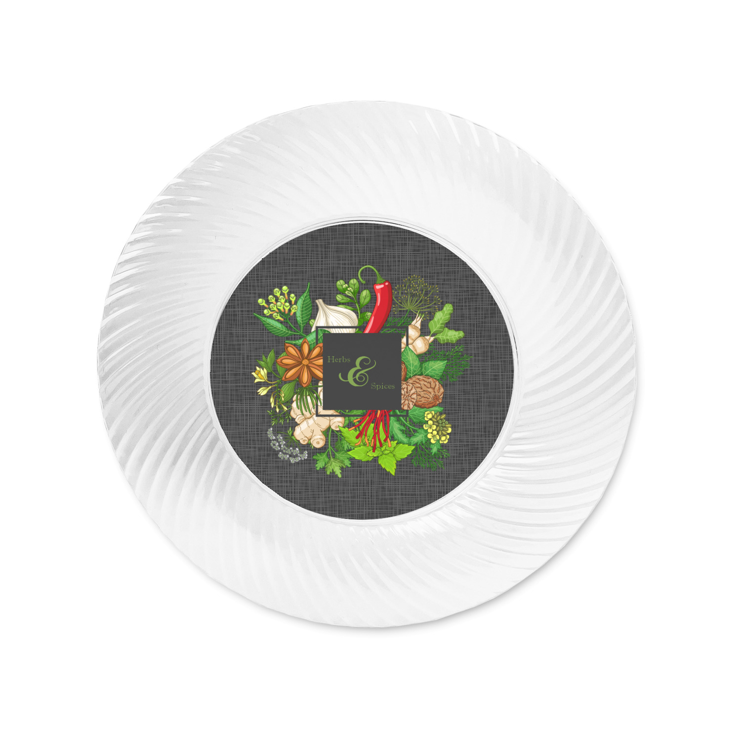 Made from a beautiful clear plastic plate as a base, your design is printed to the underside of the plate. The outside of the plate has a classic swirl texture to it for a high quality look and feel.